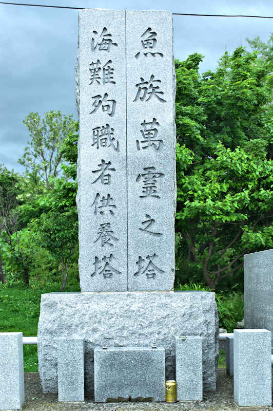 碑文より「明治45年5月4日朝、鰊刺網漁に出漁沖揚中の大小の漁船150余隻は岩内山から吹下す凄まじい東南風に煽られ、乗組員136名の生命を失う大惨事となる。本町漁業の礎となった諸霊を偲びその冥福を祈って建之。昭和55年9月 一善会会長 石山栄作」※岩内沖での遭難は碑文に書かれているより多いのだが、この範囲より狭い地域での遭難を慰霊したものと解した。碑を建立した石山栄作氏は19才の時にこの大時化で父親とともに遭難し九死に一生を得たというが、このことが心を常に離れず米寿を迎えた時に建立したのでした。鰊魚で漁民に何よりも恐れられたのは、この季節に多い天候の急変でした。◇建立年:昭和55年9月 ◇建立者:石山栄作 ◇所在地:岩内郡岩内町御崎 御崎公園 ◇G.Map:42.984114, 140.506805