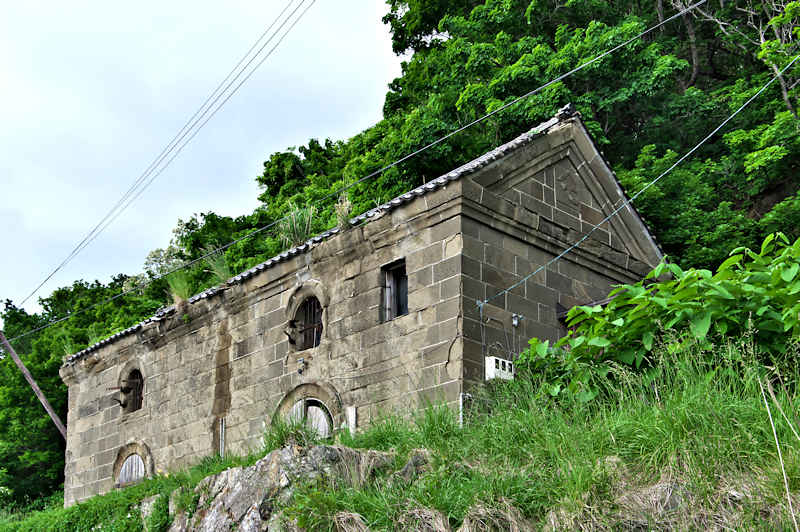 田中ノ袋澗が北海道遺産、産業考古学会推薦産業遺産に指定された時は見事なハサミ型の堤体だった。この鋏型の澗は澗は積丹最大の親方であった田中家(番屋は小樽鰊御殿)が建設したものだが、崩壊が進行し残っているのは半分以下、北海道独自の産業遺産である袋澗が消え去るのは時間の問題かもしれない。今は袋海岸部の間知石を使用した長い護岸と澗の他に石倉と邸内社の鳥居がかつての栄枯を偲ばせる。マップは袋澗◇所在地:泊村大字泊村95 ◇G.Map:43.076346, 140.484874
