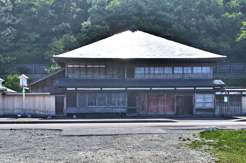道路の両側に漁家に関係した建物が並んでいるが、道路山側が田畑家番屋になる。小樽方面の鰊番屋を見た後では番屋と気づかないかも、鰊番屋に多いケムダシがあるので他の建物と見分けられるが、建物自体が地味で装飾も殆どみられない。「建造物緊急保存調査報告書(北海道教育委員会、昭和47年発行)」によると大正3年の建築で建物は木造・切妻・平入・一部二階建で一階は271㎡、二階が13.2㎡というので鰊番屋としては小規模になります。◊所在地:寿都郡寿都町岩崎町 ◇G.Map:42.790693, 140.237360