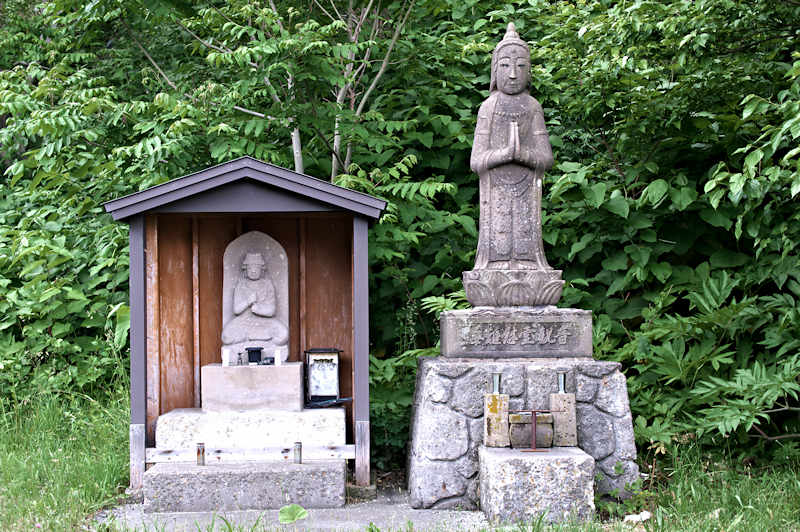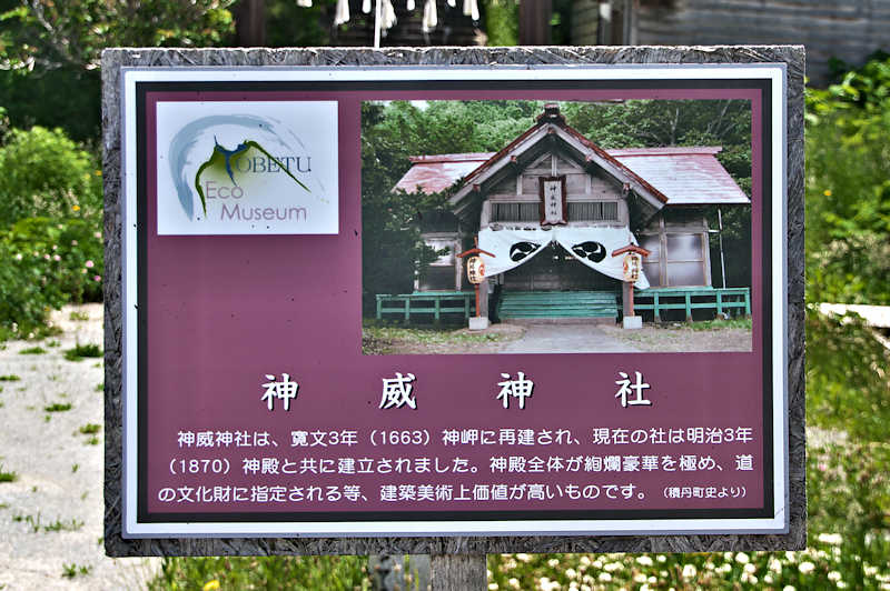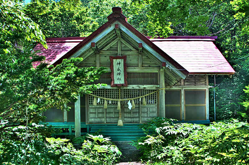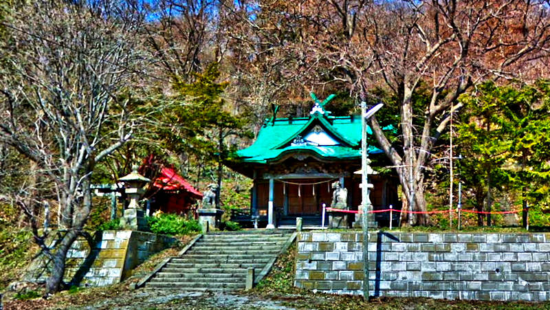 シャコタン場所は1706(宝永3)年に初めて置かれ、シャコタン(志屋古丹)場所請負人が置かれたのは1786(天明6)年で、知行主は藤倉八十八、請負人は福島屋金兵衛、1818(文政元)年~場所請負制度が廃止される迄は「岩田金蔵」が請負人で蝦夷日誌にもその名がある。シャコタンの漁場も江戸時代からニシン漁が中核で場所請負制度が廃止されるまでは場所請負人がシャコタンの漁場を仕切っていた。積丹は神威岬から北は江差追分節に「女通さぬ場所がある」とあるように女人禁制とされた海上交通の難所で、日司より小泊への陸路は岩田金蔵が開いたという。この辺は早くから和人の進出があったようで神社の創建は古いのでは1600年代という。◇所在地:積丹町日司町 ◇G.Maps:43.354336, 140.464861