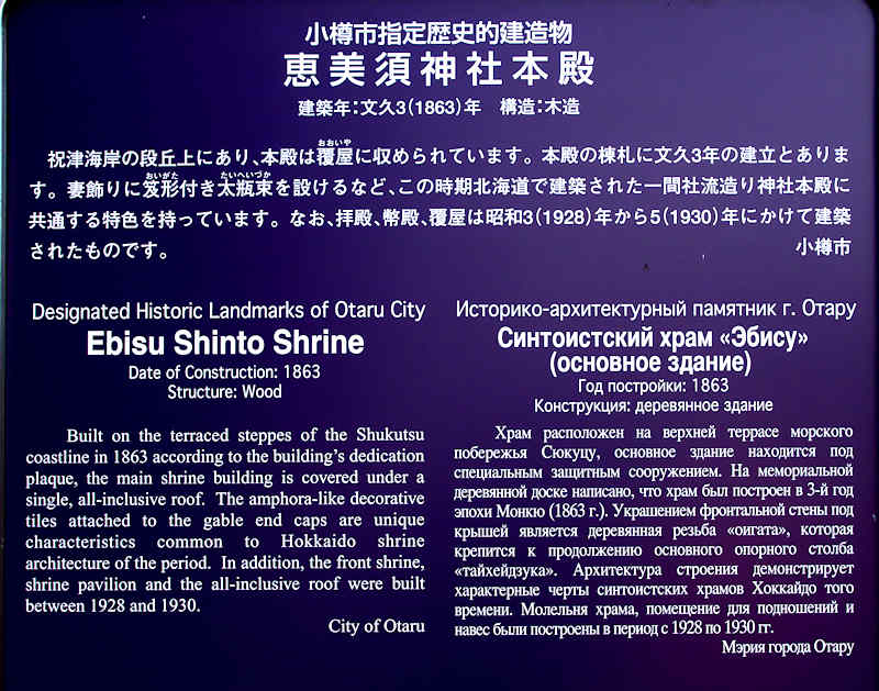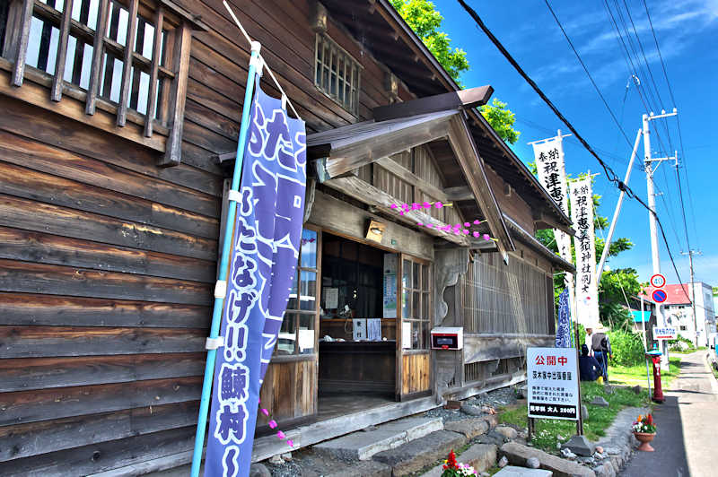 祝津のニシン場三大親方衆であった茨木家によって明治後期に建てられた「茨木家中出張番屋」は、昭和30年代前半まではニシン漁に従事した従業員が寝泊まりしていた。30年ほど前からは住む人も絶え閉鎖されていたが、平成22年にニシン番屋を修復し、地域コミュニティ施設としてよみがえる。鰊漁場は主要施設である番屋を中核に付属する各種の蔵や船揚場(袋澗を含む)、加工用の施設、干場等の敷地や施設を含めた群体であり、鰊番屋の規模は漁場の大きさの指標となる建物であり、こうした施設群を伴わないニシン漁家建築物(鰊番屋)は豪華であっても文化的、歴史的価値は半減する。そういう意味で言うと元番屋でもあった茨木家 漁家住宅、茨木家中出張番屋、石倉、神社などニシン漁場建築群がまとまってあるのは祝津ではここが一番といえるでしょう。横の坂の上に1863(文久3)年建立という小樽市指定歴史的建造物の「恵比寿神社」があります。◇開館期間:5月~10月 休館日:毎週火・水曜日 見学料:200円 ◇所在地:小樽市祝津3丁目 ◇G.Maps:43.234456, 141.013297