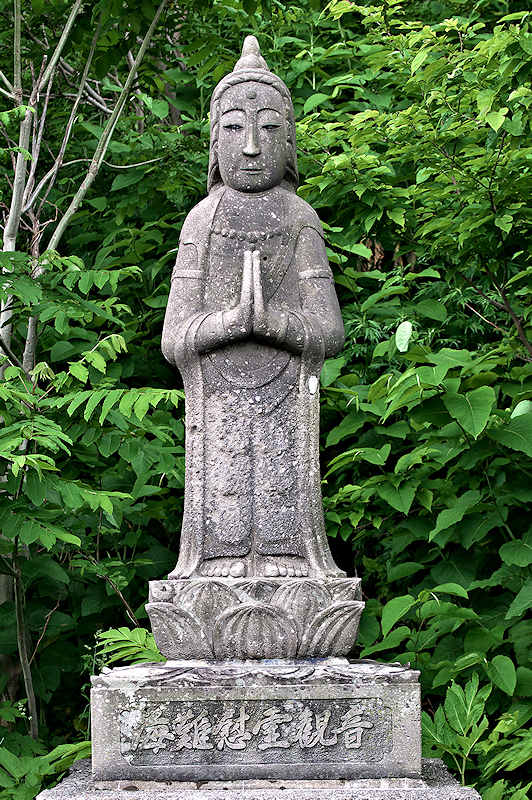 大正6年1月24日午前10時頃、朝は穏やかな日和だったのが天候が急変して猛吹雪に変わり、朝7時頃からカレイ刺し網漁に出かけた豊浜町の漁民41名、余市町全体では72名の犠牲者を出すという惨事となり、犠牲者の41人海難供養碑が豊浜町の墓地内に建立されたが風化で文字は消えている。昭和44年に豊浜町の有志が同年の事故とその前後に発生した水難事故の犠牲者を追悼する海難者慰霊聖観音像をソーラン節発祥之地の近くに建立している。観音蔵は古くは明治44年から昭和41年までにあった海難事故犠牲者を慰霊するものだといい、聖観音像横に御堂が建立されていた。。◇建立年:昭和44年 ◇建立者:豊浜部會一同 ◊所在地:余市郡余市町豊浜町 ◇G.Maps:43.242225, 140.707761