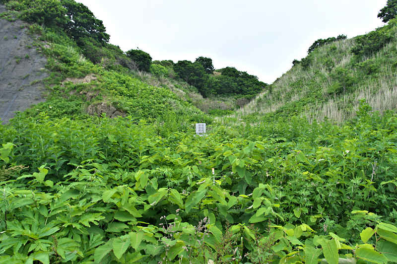 船倉ノ袋澗は「北海道文化資源データーベース」では瀬棚町には大正時代に作られた石造袋澗の遺構2基が残っていて蒲鉾型、長さ20m、高さ1.5m、2列遺構、袋澗建設は1899年に始まり美谷中心に発達したとあるが、其の写真と比べると崩壊は更に進んでいるが(特に南側の堤)比較的まとまって残っていた袋澗跡でした。横間トンネル南側坑口から南に約450mに位置し2つの切澗が隣接する。北側の袋澗は方形の切澗のみで水路は北に開口、南側の袋澗はは石垣に囲まれて水路は西に開口し港口に溝石賀残る。北側の堤は間知石谷積み巻き天端で円錐台の石造係留柱2本、内側壁面には綱を繋ぎとめる穴のある突起構造があり他では見なかった。南側の堤は崩壊が進んでいるが間知石谷積みで上に詰まれた石面が上を向きかげん。蒲鉾型で長さ20m、高さ1.5mで2列遺構は瀬棚町に残る袋澗遺構としては保存状態が一番よい。◇築年月:大正年代 ◇堤構造:間知石谷積・巻き天端 ◇澗利用:無利用 ◇所在地:せたな町瀬棚区北島歌(上美谷 ) ◇G.Maps:42.562624,139.835727