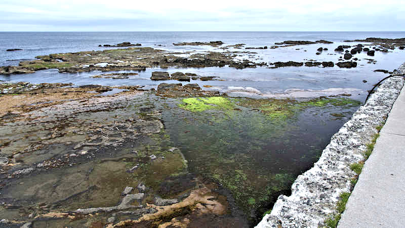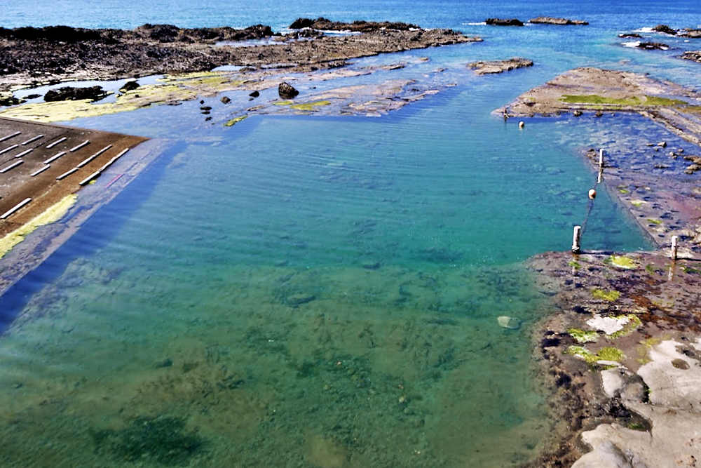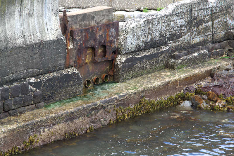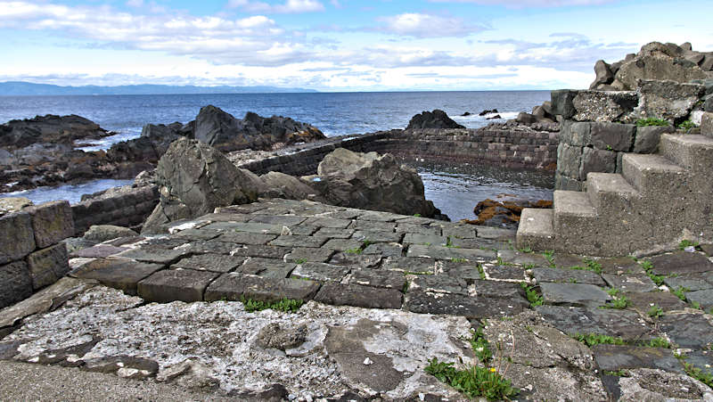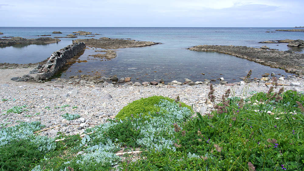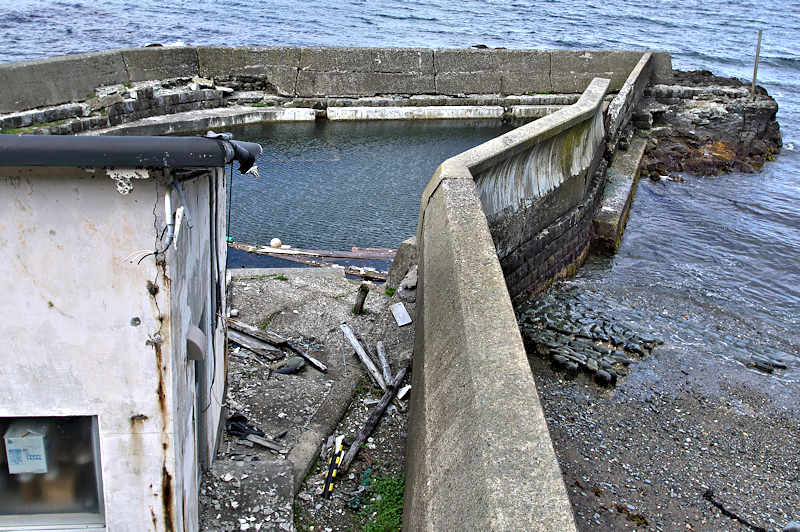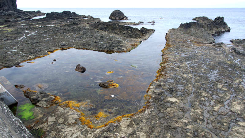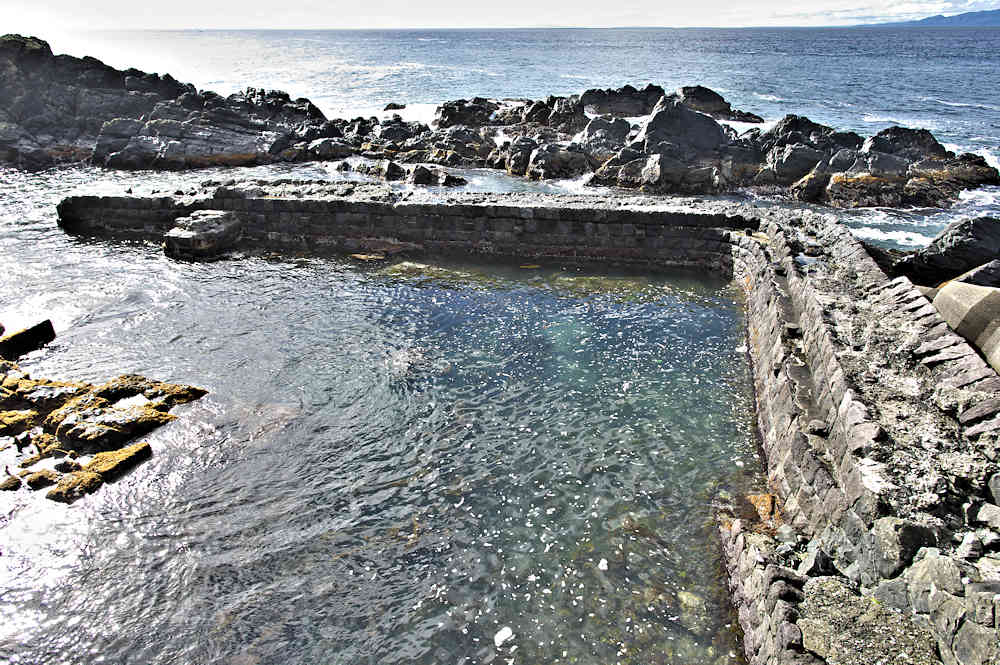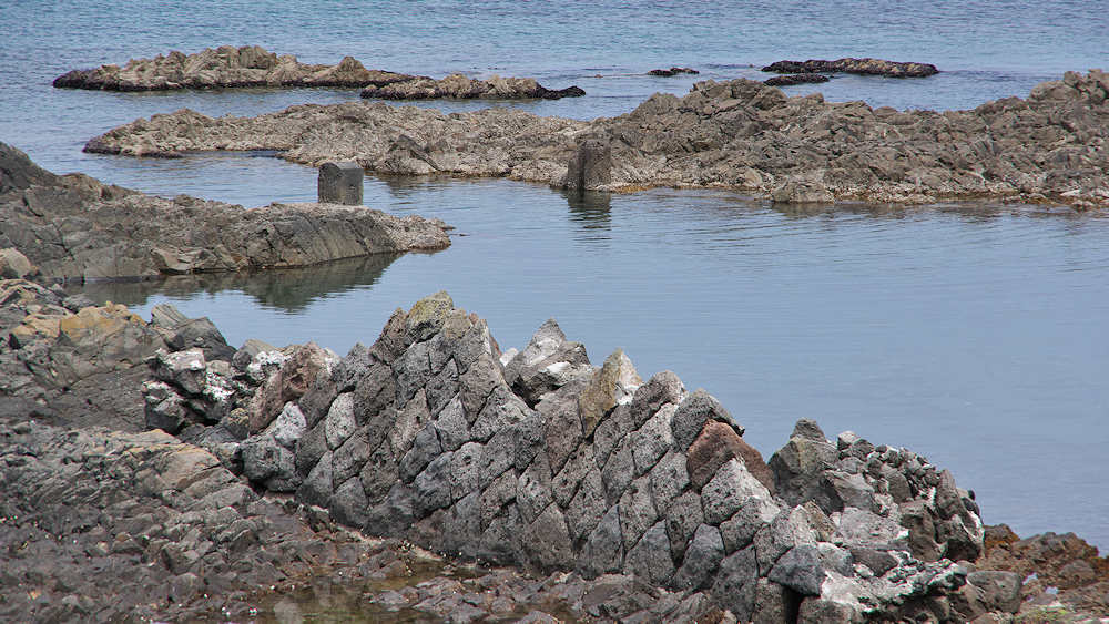 汐首漁港の北西に位置しアワビ中間育成場として整備され港内の隅に隔離されたようにあるが今は利用されていない。堤体は間知石布積み水面上4~5段で上をコンクリートで補強、間知石が見られない北側の堤の開口部をコンクリートで塞いだようで開口部が見当たらず澗内の透明度は低い。孤を描いて南から東西に伸びる堤は横断面が階段状の箇所があり天端に石造係留柱があります。陸には間知石布積みの護岸が残っています。◇澗利用:無利用 ◇所在地:函館市汐首町 汐首岬灯台直下 ◇G.Maps:41.710389, 140.964222