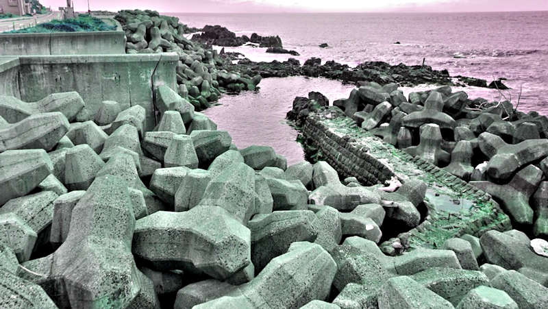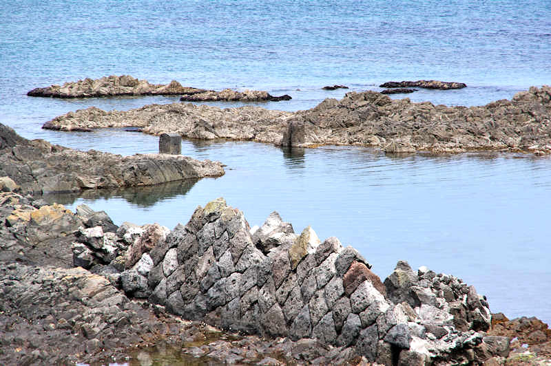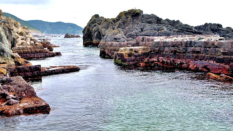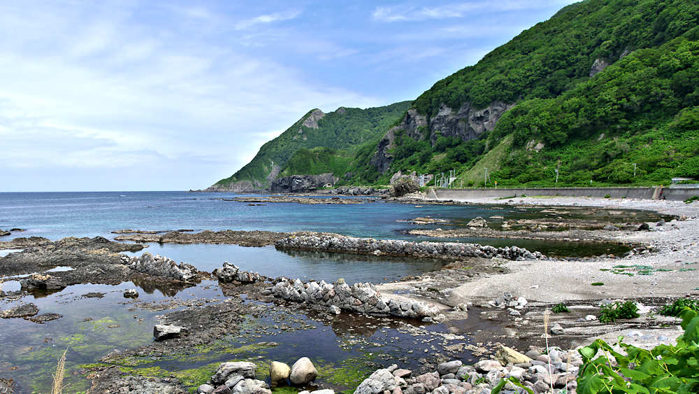 国道229号藻岩トンネル北に約100mの、幅約50mの波蝕棚にあり北約30mには屏風状の露岩が2筋、南約100mには無名の出岬がある。切澗の形はハコ型で堤は痕跡もなく北西の角から水路を南西に伸ばして開口している。陸側から見ると斜めに見えます。◇澗利用:無利用 ◇所在地:せたな町瀬棚区北島歌 ◇G.Maps:42.583126,139.828238