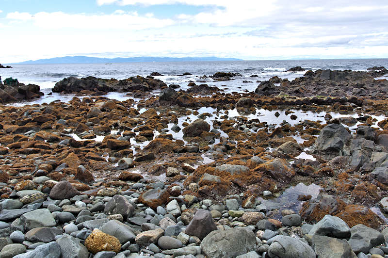 汐首岬の北海道本州最短地点に位置し、東西2つの水域と石張りの平場・斜路、石垣がある。北西が陸に接し陸から南東向きにコンクリートの階段を13段降り平場に至る。この石張りは標高の低い箇所は既に波に洗われ間知石の残骸が転がっている。南西の堤は間知石布積み6段だが天端が破壊されているので実際はもっと高かったかも、堤は南端で丸角で直角に折れ南東の堤につながっている。南東の堤は間知石布積み5~6段、途中で内側に分岐し対岸からも堤を伸ばして狭窄させ袋澗の水域を2分、対岸側の堤は破壊され痕跡のみ。海側の方は間知石布積み4段で天端・石造係留中まで残存し、突端部には溝石が2重になっている。北東の堤は間知石布積み5段だが残っているのはわずかで先端にゆくほど崩れている。袋澗のすぐ沖に露岩が離岸堤のように連なり大きな破損を食い止めているようだ。◇澗利用:無利用 ◇所在地:函館市瀬田来町 ◇G.Maps:41.710194, 140.968556