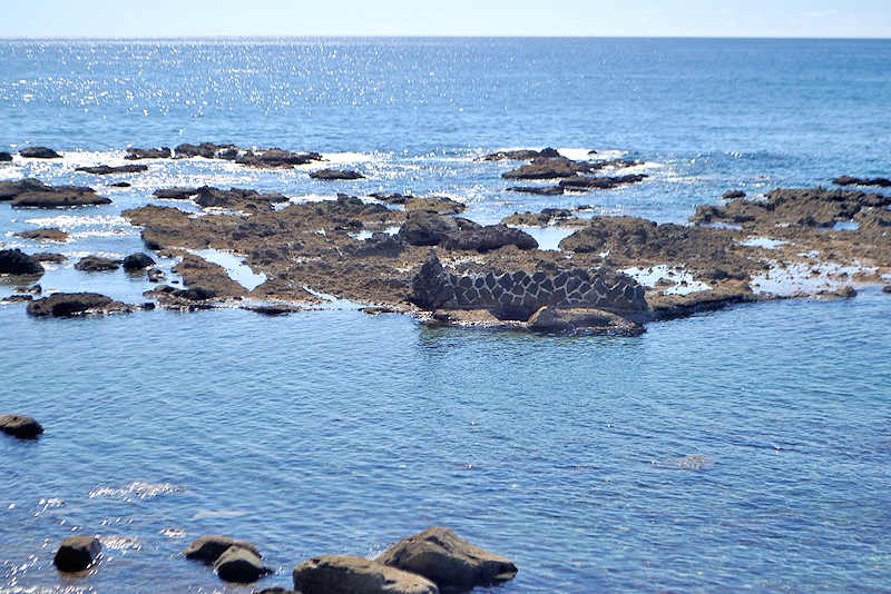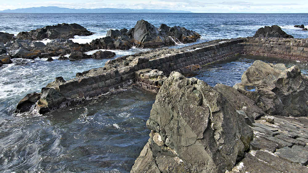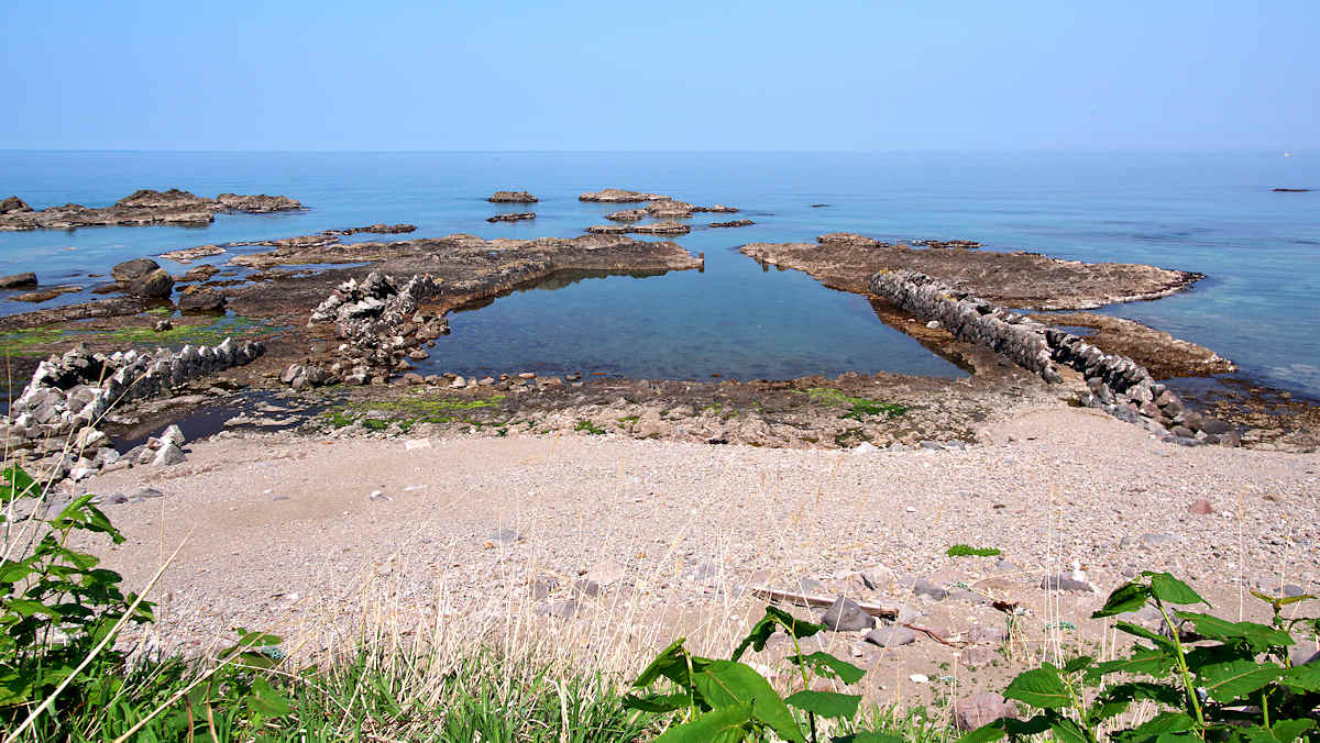 島歌郵便局の北約100m、美谷川河口からは南に約250mにあり、ほぼ方形の切澗で北西隅から南西方向に水路がある。北辺に石垣がわずかにあり、切澗と水路の境には溝石があります。周囲の波蝕棚には柱の穴が多数穿たれ、南隣にも袋澗には狭い感じの切澗がある。◇澗利用:無利用 ◇所在地:せたな町瀬棚区北島歌 ◇G.Maps:42.555697,139.835843