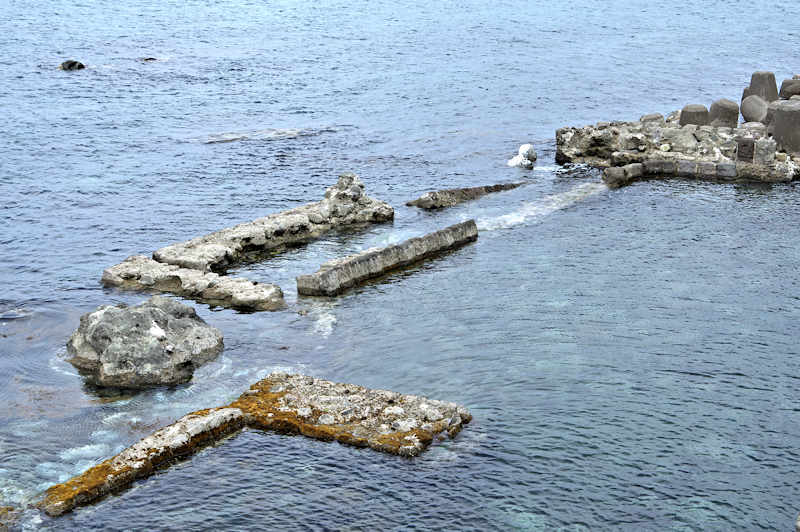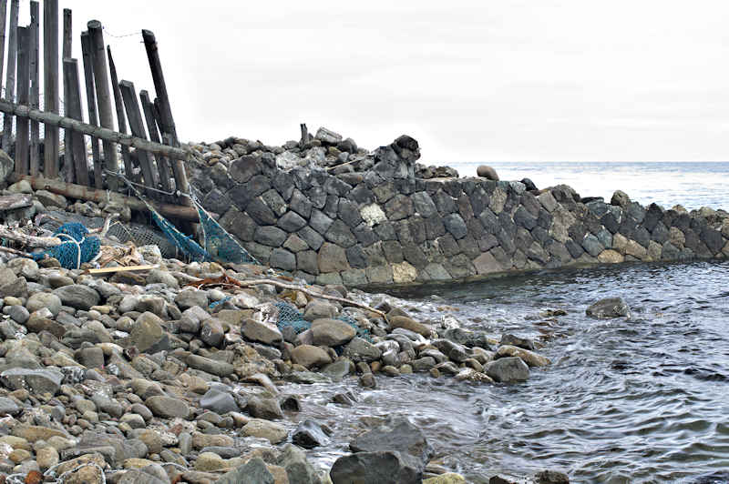 神崎漁港エリアには袋澗が3カ所有ったようですが漁港化で消滅、神崎漁港の堤に石垣の一部が残っているだけです。釣りのついでに立ち寄ってみるのも一興かも。◇堤構造:間知練積 ◇澗利用:神岬漁港 ◇所在地:積丹町大字神岬町柾泊 ◇G.Maps:43.313897, 140.356476