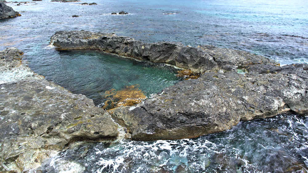 一際目立っている奇岩のキス熊の横にかつて設置されていた説明板によると、古宇場所請負人の雇い人だった沢口庄助氏が独立し漁場を経営(古宇場所の下請け?)した。既に安政5年には鰊建網を経営しこの袋澗(初めは岩場を切り抜いた簡単な構造だった)に水揚げしていたという。後にこの袋澗が道内最大となり建造費も積丹では最大と云い、相当な広さがあり並の袋澗ならば2~3個すっぽり納まる規模というが、今はそれほど大きくは見えないもキス熊が良い目印になる。澤口の澗の中で比較的保存状態の良いのはキス熊のある澗で熊岩側と陸側の石垣は保存状態がよい。キス熊岩から伸びる堤は天端部の崩壊が始まり水路を挟んだ外側の堤と東側の堤と澗を仕切る陸側の堤はコンクリートで補強されている。◇築年月:詳細不詳 大正11年に拡張 ◇経営者:澤口庄助 ◇堤構造:間知練積 ◇澗利用:無利用 ◇所在地:神恵内村大字神恵内村 ◇G.Maps:43.147101, 140.419667