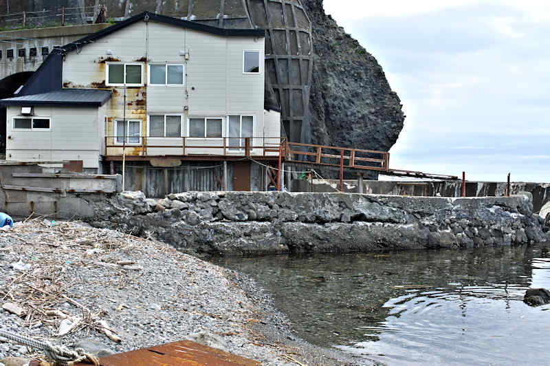 船揚場として今も利用されているようですが、幅も高さもある堤は崩壊がすすみ一部が現存しているだけです。澗の形は実見でも航空写真でも不明瞭、ただ釣りには良さそうな雰囲気でした。またこの辺から見える神威岬は絵になる景色といえます。◇築年月:大正4年 ◇経営者:水口榮五郎 ◇堤構造:間知石練積 ◇澗利用:&船揚場nbsp;◇所在地:積丹町大字神岬町沼前 積丹トンネル前 ◇G.Maps:43.283225, 140.345410