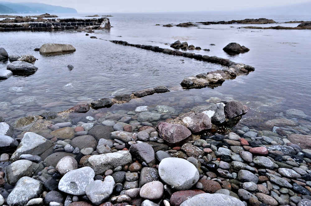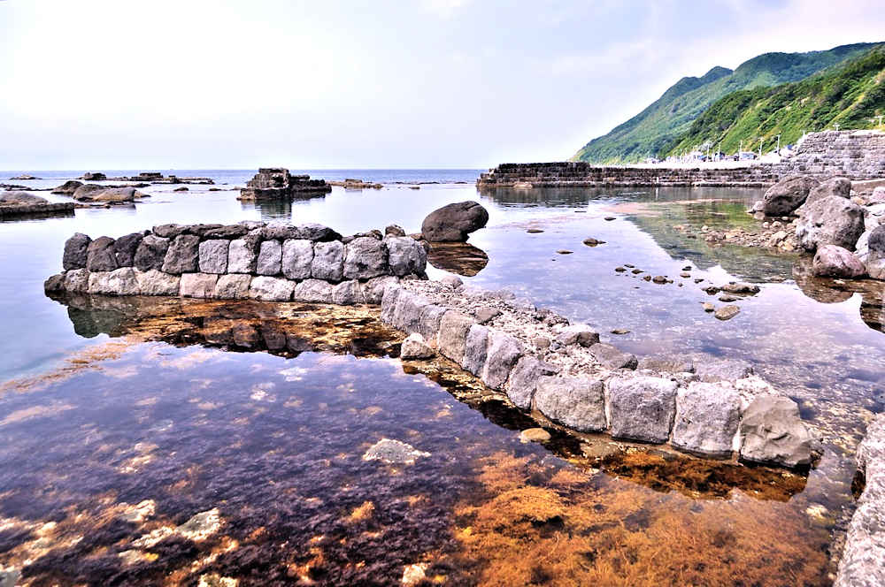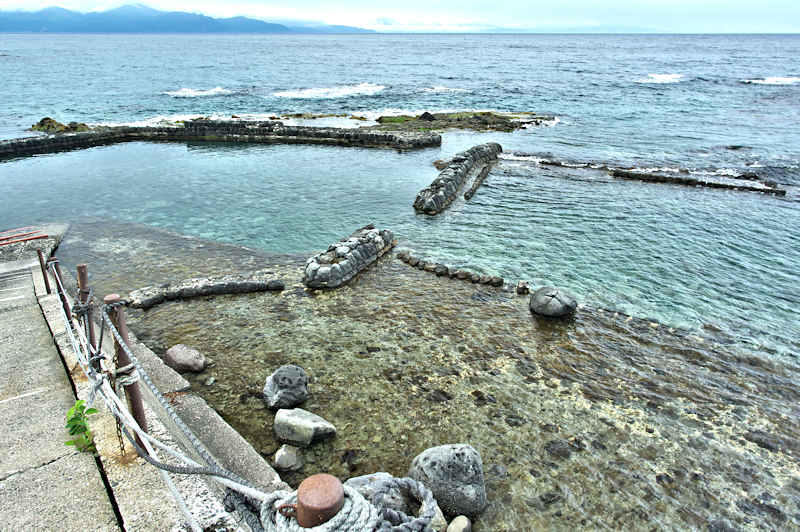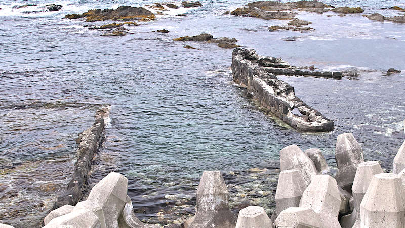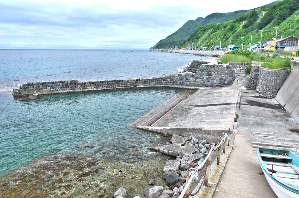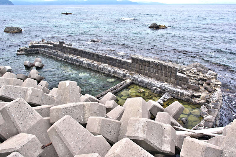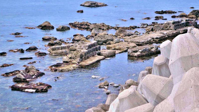 祈石大橋の架かる入り江の山側にあり、石垣がわずかに残る程度。向かい合うように対岸にも護岸の石垣が残るが、高さのある橋から見るので時には恐怖感が先立つかもしれません。怖い思いをして無理して見るほどの遺構ではないので景色を楽しみましょう。◇築年月:不詳 ◇経営者:小倉十兵衛 ◇堤構造:間知練積堤及石枠 ◇澗利用:無利用 ◇所在地:神恵内村大字神恵内村祈石 ◇G.Maps:43.125205, 140.443729