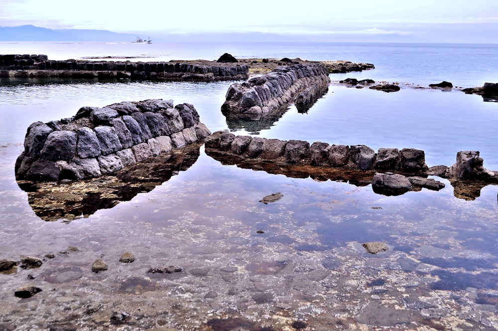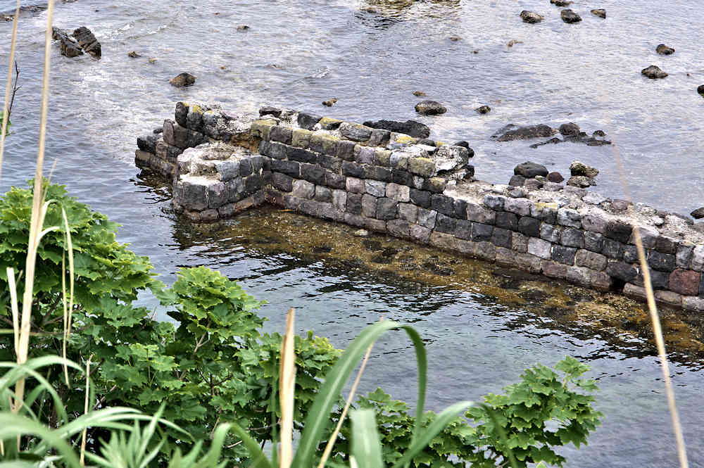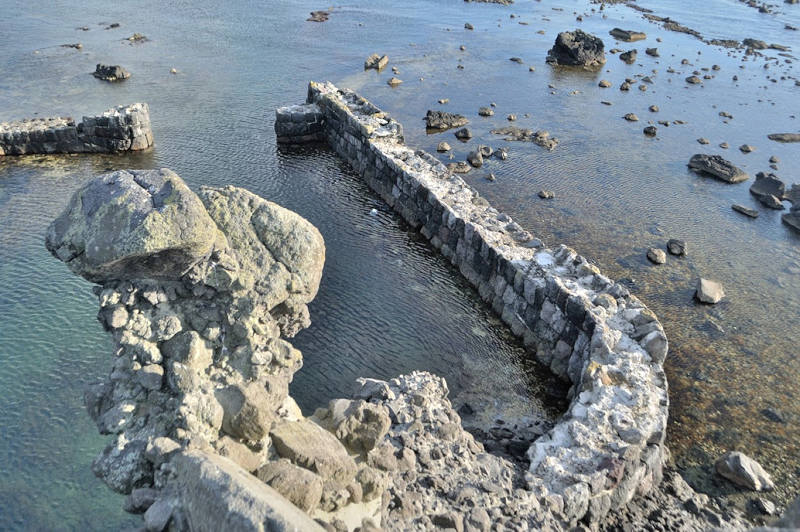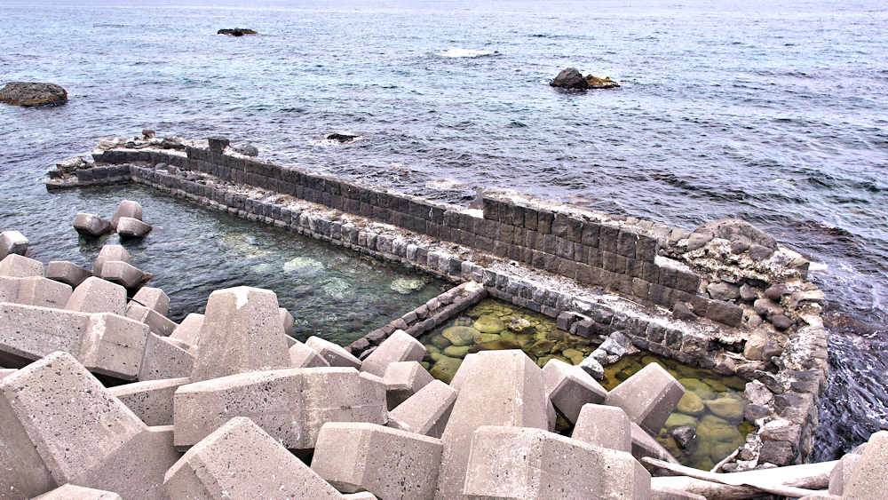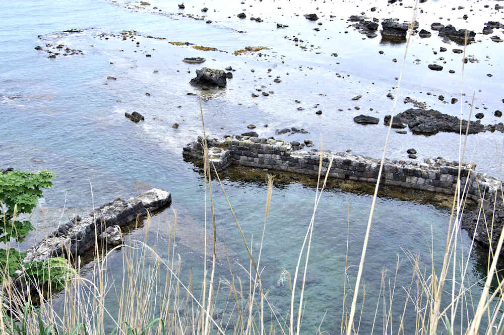 祈石大橋の架かる入り江の山側にあり、石垣がわずかに残る程度。向かい合うように対岸にも護岸の石垣が残るが、高さのある橋から見るので時には恐怖感が先立つかもしれません。怖い思いをして無理して見るほどの遺構ではないので景色を楽しみましょう。◇築年月:不詳 ◇経営者:小倉十兵衛 ◇堤構造:間知練積堤及石枠 ◇澗利用:無利用 ◇所在地:神恵内村大字神恵内村祈石 ◇G.Maps:43.125205, 140.443729