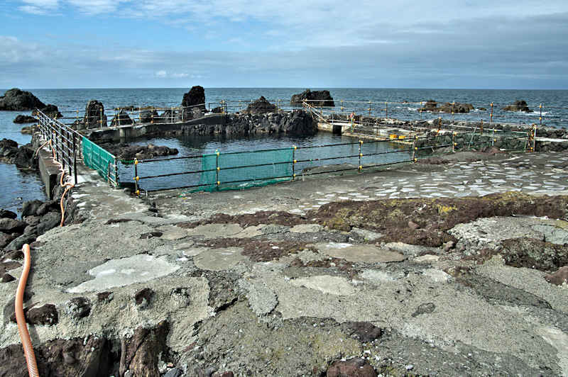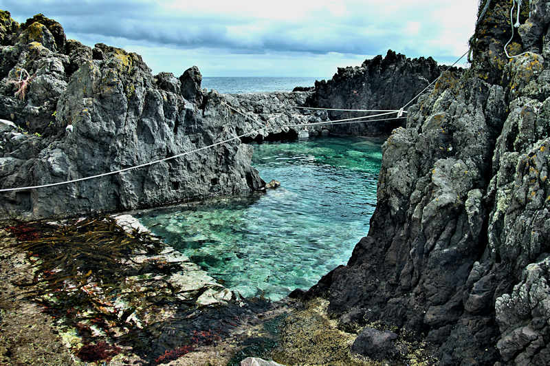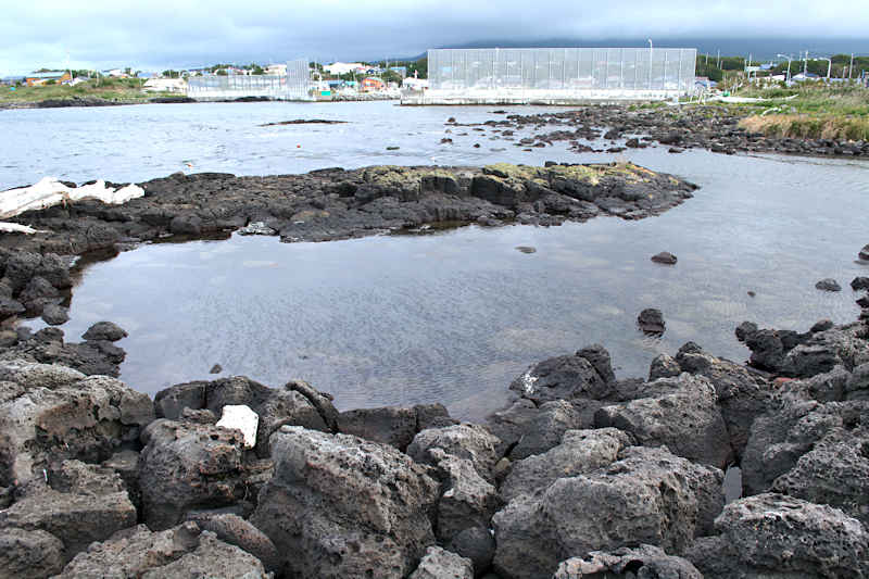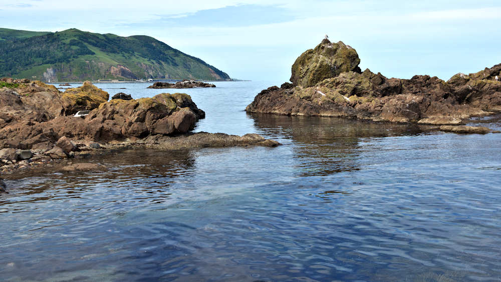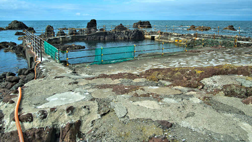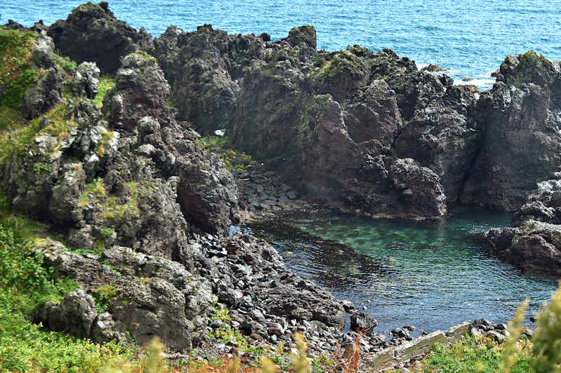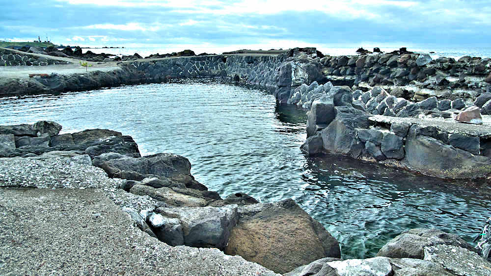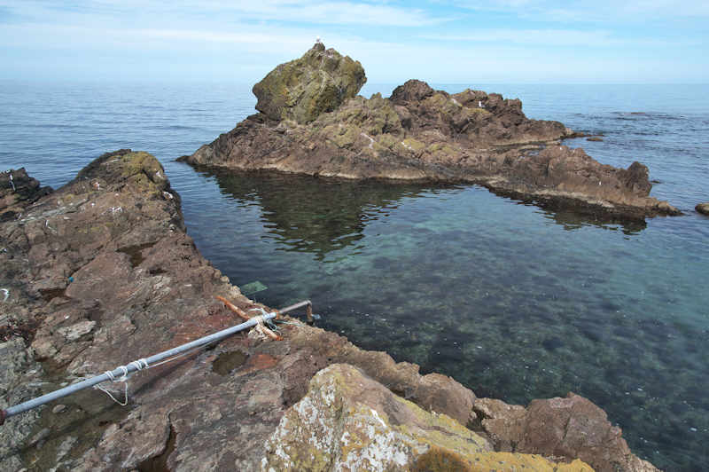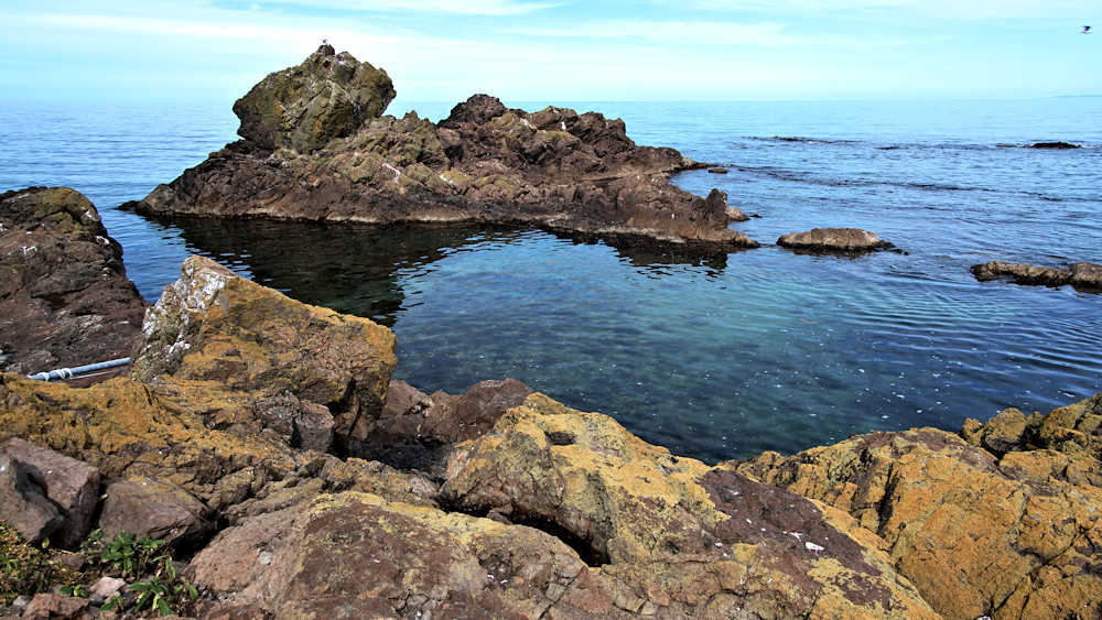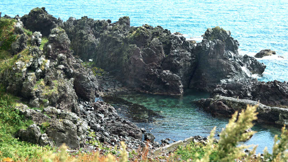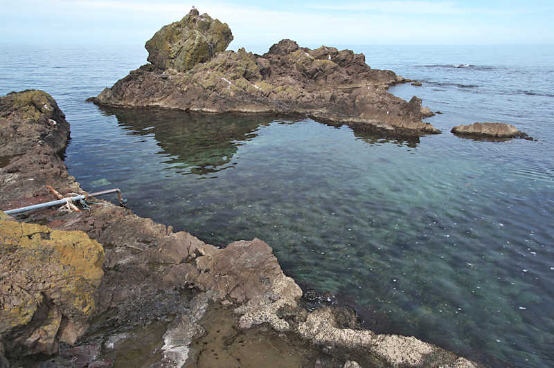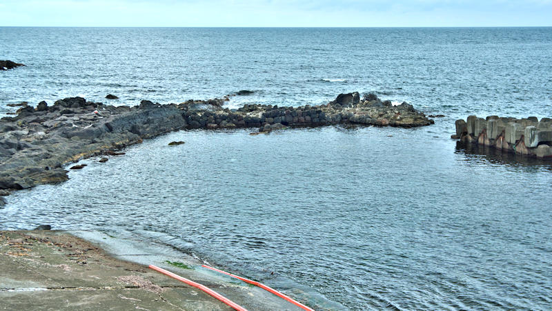 仙法志御崎公園の自然水族館は鰊袋澗を改造したものという。陸側の石垣などを含めると袋澗跡の雰囲気は残っているが原型は想像もできない。袋澗としては隣接する澗を含めてニウロコの澗と呼んでいたという。自然水族館は石積堤やコンクリートで仕切られ、自然に近いプールでアザラシが飼育され観光地となっているが、港湾のような改変とは違い袋澗の名残がみられる。ここから見える利尻山もいい。◇築年月:不詳 ◇堤構造:不詳 ◇澗利用:御崎公園自然水族館 ◇所在地:利尻町仙法志御崎 ◇G.Maps:45.100054, 141.227143