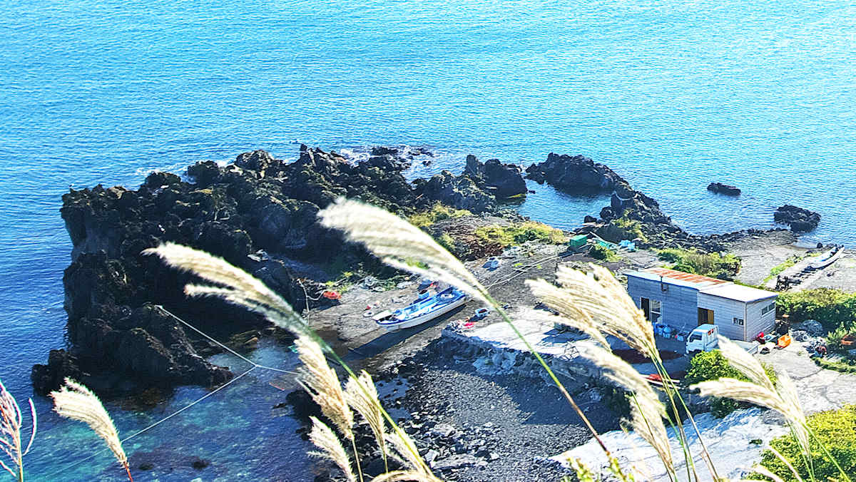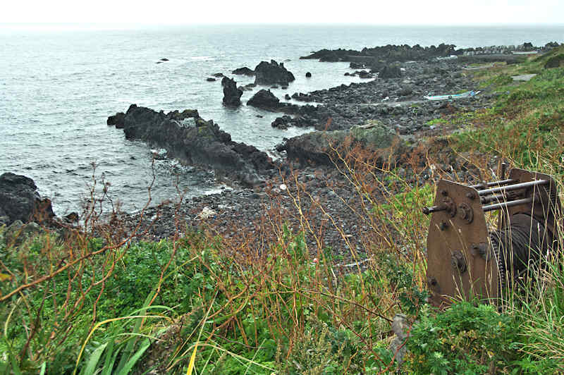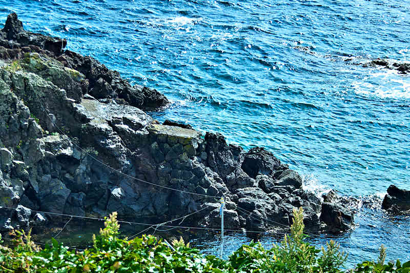 仙法志崎灯台下に広がる澗に石垣堤があり博物館の話では袋澗跡というが、袋澗としては狭いようで他の澗との併用で袋澗として機能していたようです。石川の澗、田中の澗など名前のある澗で船揚げ場として現在も使用されている。自然地形を利用した澗で、石積堤の底は抜けているが、残っている石垣の石材は間知石というより割石に近い印象だがはっきりせず、積み方は乱れていて谷積みのようです。◇築年月:不詳 ◇堤構造:間知石練積? ◇澗利用:船揚場 ◇所在地:利尻町仙法志御崎 ◇G.Maps:45.097149, 141.238308