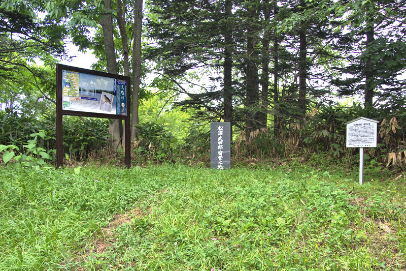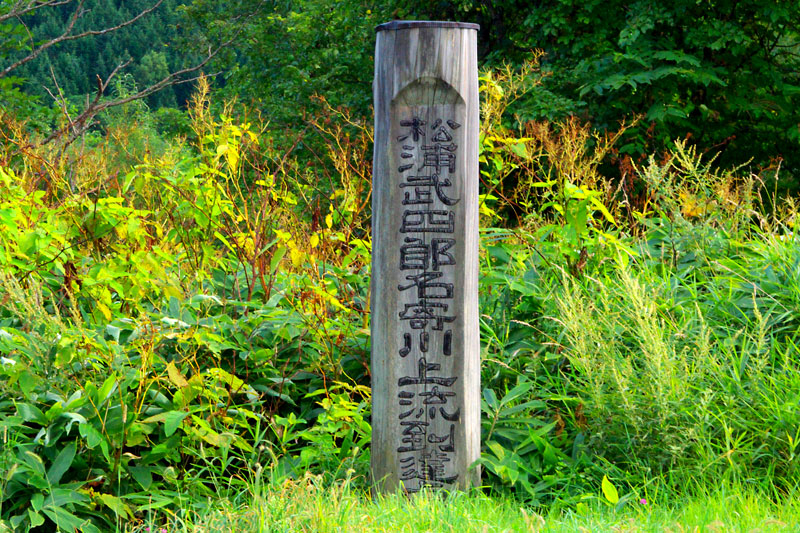 美深町市街地から国道40号を北上、恩根内大橋を渡り右折、国道下を通り抜け恩根内駅を過ぎて三叉路を左折するとまもなく右側の道路脇とで、恩根内駅から約400mに裏面が英文の珍しい石碑と美深町設置の説明板、ヲクルマトマナイ・天塩川歴史紀行説明板がある。以下は説明板より転載「松浦武四郎は、安政4(1875)年、旧暦の6月9日に天塩を出立、天塩川を遡って6月13日夜、この地のエカシテカニの家に一泊した。さらに志別方面の調査を終え、6月24日帰路に一泊している。武四郎が一夜の宿をした「エカシテカニ」の家族12人が一行を心優しくもてなした様子や、当時のアイヌの生活状態、さらにこの地方に伝わる五弦琴(※トンコリのこと)など「天塩日誌」や「アイヌ人物誌」などに見事に描写されている。エカシテカニ家族の心のこもったウバユリ団子や母が弾いた五弦琴の音色の手厚いもてなしに感激した武四郎は詩2首を柱に記し送っている。美深町は、この詩を後世に継承するため「びふかアイランド」ないに詩碑を建立している。この地において、松浦武四郎の研究者であった笠原靖雄氏は偉大なる探検家武四郎を讃えようと昭和初期からこの地に「幕吏松浦判官探検宿営地」と記した木柱を建立していた。美深町はこの地を文化史跡として末永く武四郎の偉業を讃えここに碑を建立する。平成10年10月 美深町」これ以上の説明は不要だろう。森林公園びふかアイランド内にある歌碑はこの時のお礼に詠んだ歌が刻まれている。平成10年に美深町文化史跡として石碑となったが裏面は英文と珍しく「Tha Place of Explorer Takeshiro Maatsura's Stay」と刻まれていたが続きは写真で!!。初代松浦武四郎宿営之地の碑は村上長次郎氏で昭和10年頃に国鉄踏切西側付近(かつて神社があった)に木標を建て、笠原靖雄氏が昭和34年頃に現在地に移設したようです。天塩川歴史紀行説明板が併設されている。◇所在地:美深町恩根内