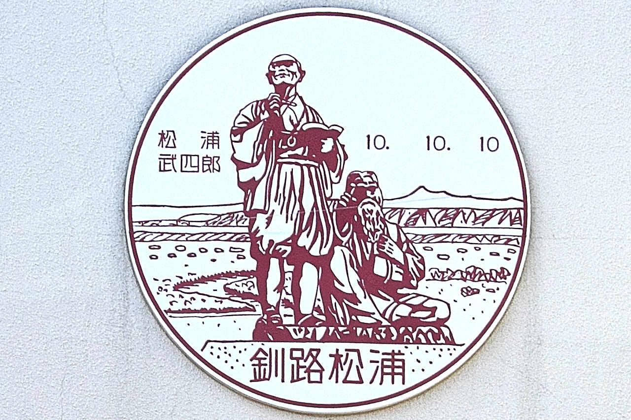 松浦町松浦町は松浦公園、松浦通り、松浦橋、松浦郵便局と、ここではなんでも松浦である。松浦郵便局には弊舞公園にある松浦武四郎蝦夷地探検像の記念スタンプスタンプ(写真の絵柄)が有り、使用開始は平成10年10月10日。付け加えると松浦武四郎は釧路市の名付け親でもある。☆武四郎が釧路に足跡を印したのは弘化2年、安政3年、安政5年の三度であり、久摺日誌、蝦夷日誌、竹四郎廻浦日誌、戊午日誌の中で当時の状況を克明に書き記している。その中にあった一文を見て「松浦武四郎は不毛の久寿里場所即ち此町の如き泥炭地たりとも東蝦夷地第一の都会たるべしと絶叫したるは超達見として敬意を表すべきである此の因縁を記念の意味に於て松浦町」と武四郎の達見に敬意を表すため昭和7年に西幣舞とよばれる町名の一部を改め松浦町としたと云う。発案したのは釧路市会議長の佐々木米太郎氏とのこと。当時の釧路における松浦武四郎爺に対する評価の尺度は現在とは凡そ違っているが、当時の松浦武四郎への一般的な評価であった様だ。松浦武四郎にちなんだ名は厚真町字富里の松浦橋、大雪山系松浦岳(緑岳)、仁木町のまつら滝、旭川の武四郎街道などがある。◇釧路市松浦町