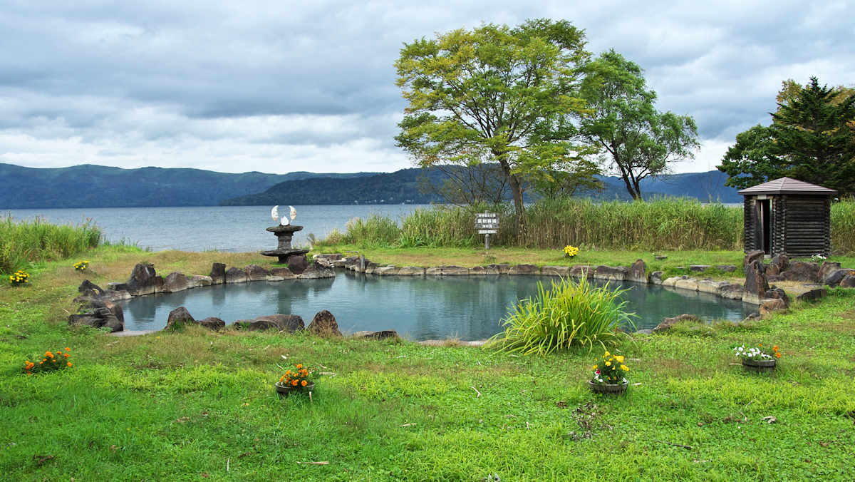 野湯マニアには結構有名な池の湯右奥の松屋旅館敷地内に松浦武四郎の歌碑あるも草が伸びると見えない。松浦武四郎が屈斜路湖を訪れた翌日の4月11日に小舟で東岸を見て回っている。丸山道子・現代語訳「久摺日誌」より『湖の東側の温泉(セセカ) についた。これは岸に巾20間ほどの池になっており、底は岩盤で、その間から温泉が噴き出していた。~中略~ちょうど水乞鳥が一羽そこに来ていたので「あの鳥の名は・・」とたずねると、ここでも「ヲユユケ(あかしようびん)」と言うそうでよく見かける鳥だそうである。』とあり、この水鳥を見て詠んだ歌がが刻まれている。「寿里乃湖 岸のいで湯や あつからん 水乞鳥の 水こふて鳴く 桂山書」と刻まれ、右側に小さく「派水乞鳥立 註和名赤ショウビン 夷名オユユケ」左側には安政五年四月十一日 竹四郎」とあった。碑の建立は裏面に「釧路北三國有志代表 紀元二千六百一年記念 世話人 佐々木米太郎」とあり昭和16(1941)年に建立された碑のようです。世話人の佐々木米太郎氏は釧路市会議長を努めるなど釧路政財界の実力者だったようで、松浦町生みの親でもあるが、阿寒や弟子屈池の湯の碑などの延長線上にあるのが釧路にある阿寒国立公園の父として顕彰した松浦武四郎蝦夷地探検像なのかも。最近は整備が行き届いてるとは言いがたいが、読めない歌碑は苦痛なだけで説明板は欲しいものだ。池の湯の広い温泉は夏は適温だが、冬は温度が低すぎて入浴は無理◇弟子屈町池の湯 ◇標高 122m
