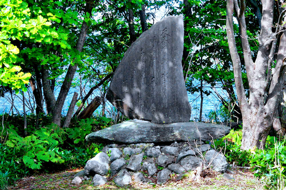 さ屈斜路湖畔で超有名な露天風呂(コタン温泉)がある屈斜路古丹のすぐ近く、屈斜路コタンアイヌ民俗資料館の敷地内に松浦武四郎の歌碑が建立されています。☆松浦武四郎は安政5年4月10日、和人ではじめて屈斜路湖にはいる。久摺日誌(丸山道子現代語訳)には「クッチャロについた。ここがこの湖の落ち口である。人家が二軒有って、それから川を東岸に越えるとまた七軒の人家が有った。この辺りの家々は、“湖水に枕して家居す”の言葉通りに、風景がまことに素晴らしい」と記す。翌日は船を雇て湖中見物、東岸を廻っている。その時に詠った一首“汐ならぬ 久寿里の湖に舟うけて 身も若がへる こゝちこそすれ”左側に「安政五年五月 松浦武四郎ここに来たる」と小さく刻まれている。碑の裏面に「古丹の人々と共に建立す 平成15年8月吉日 寄贈者 磯 里明」とあり此の地方では新しい碑となります。◇弟子屈町字屈斜路古丹