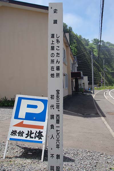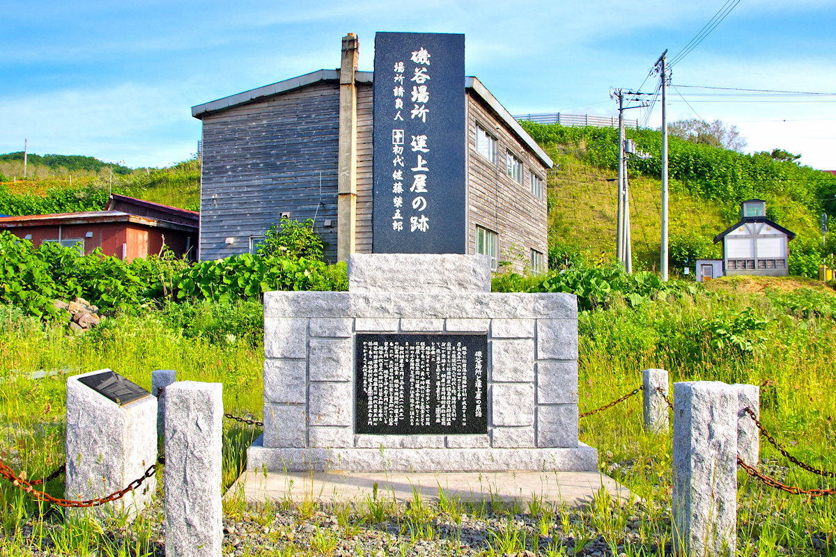 シャコタン場所は1706(宝永3)年に初めて置かれ、シャコタン(志屋古丹)場所請負人が置かれたのは1786(天明6)年で、知行主は藤倉八十八、請負人は福島屋金兵衛、1818(文政元)年~1875(明治8)年迄は「岩田金蔵」が請負人で蝦夷日誌にもその名がある。積丹は神威岬から北は女人禁制とされた海上交通の難所で、日司より小泊への陸路は岩田金蔵が開いたという。場所請負制度は明治2年に廃止されるも、廃止反対が強く「漁場持」と名を変え実質的には明治9年迄温存された。松浦武四郎は安政3年に当地を陸行し運上屋で宿泊、記録にはシャコタンは元々はクッタルシという所で、シャコタンは近くの川の名であるとも記している。◇所在地:積丹町日司町