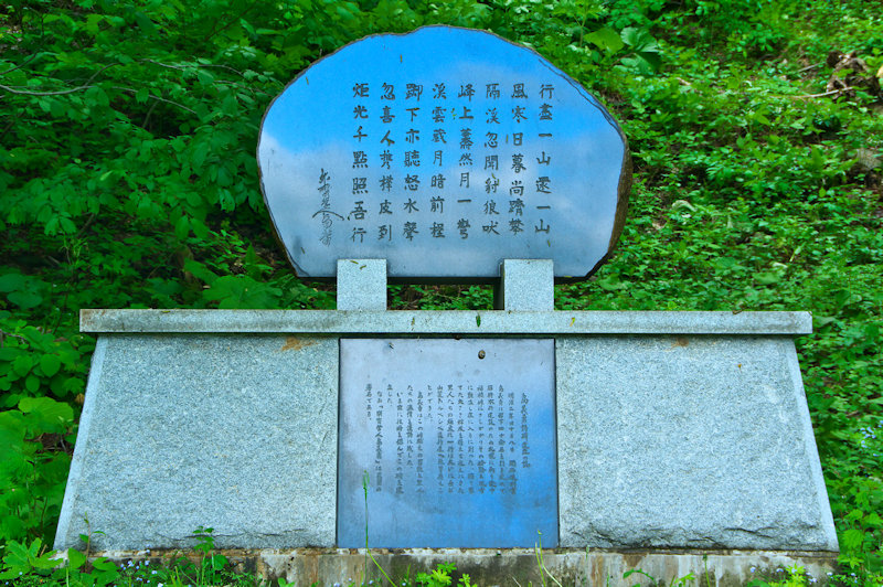 行盡一山還一山 風寒日暮尚躋攀 隔渓忽聞豺狼吠 峰上蕭然月一彎渓雲蔵月暗前程 脚下亦聴怒水声 忽喜人携樺皮到 炬光千點照吾行と刻まれてます。誰か訳してください(^^; 佐賀藩士だった島 義勇は「北海道開拓の父」と呼ばれ、札幌の街を計画したことで知られる。開拓使判官として明治2年にとして赴任、札幌を本府と決め建設に着手するも、後の開拓長官と意見が対立、翌年には下野、後に士族の反乱ともいわれる「佐賀の役」(明治7年)で非業の死を遂げるている。松浦武四郎の良き理解者の1人でもあった。◇所在地:仁木町大江 稲穂トンネル入口右側