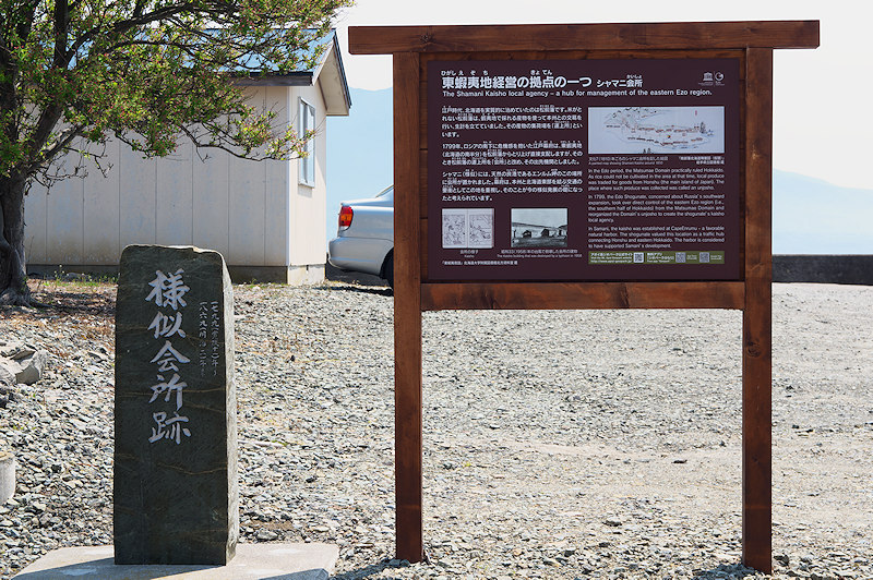 幕府は諸外国との関係が緊張したことで1799(寛政11)年に東蝦夷地を直轄とし、様似山道を完成させ翌年にエンルム岬の麓にあった松前藩の油駒運上屋をシャマニ会所と改めた。1821(文政4)年には蝦夷地の大半を松前藩へと返却したが、1855(安政2)年には再び幕府直轄としている。文化10年以降は駅逓業務も請負制になり、会所(運上屋)が人馬継立、継立馬の飼育、旅籠屋の業務を担った。かつて和人地の奥、東西蝦夷地は本州の婦女子立ち入り禁止とされていたが、安政2年に函館奉行はそれまでの政策を変え妻子同伴を可とした。様似最後の場所請負人(漁場持ち)は万屋(佐野)専左衛門(シツナイ、ウラカワも同様)でした。今は会所町という地名と碑が残っている。松浦武四郎の東蝦夷日誌-シャマニ編では「シャマニ会所、地名エンルンなるを、シャマニベツ住する土人を遣う處故に此如改りし也。元は松前家臣蠣崎蔵人の窮地なり」とあり。松浦武四郎は安政3年9月と安政5年7月に宿泊しているが、弘化2年の知床往復の時も宿泊したと思われる。◇所在地:様似町会所町1