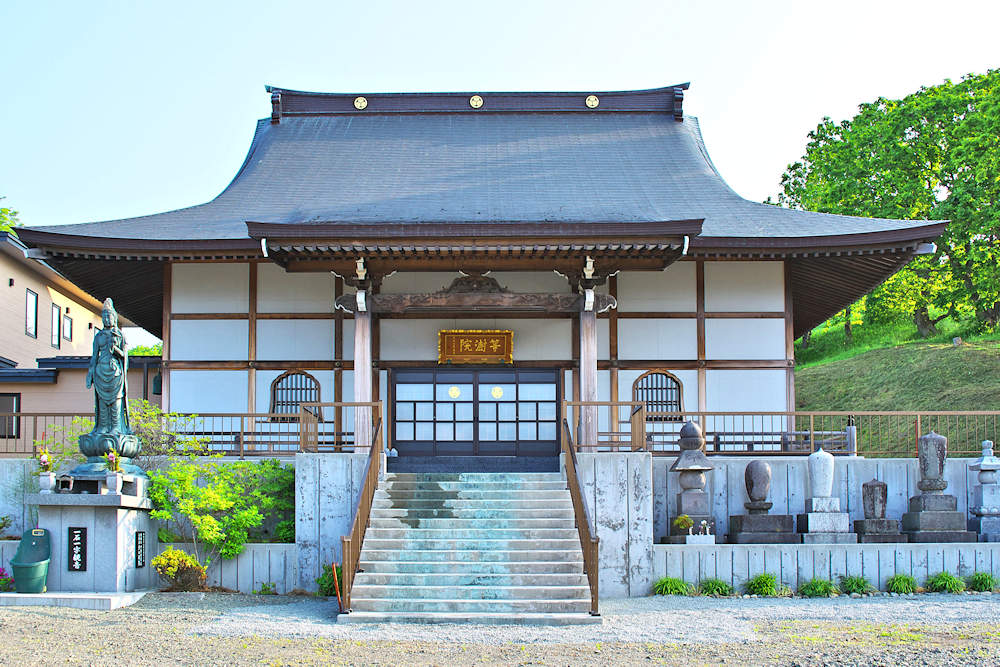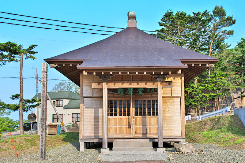 江戸幕府は享和2(1802)年に蝦夷地入りしている和人の宗教行事の執行、宗教政策として場所で働くアイヌ民族のと教化と宗門改め、キリスト教の侵入防止やアイヌ民族の親ロシア化対策などのため蝦夷地に5寺院の建立を決定し、先だって有珠、様似、厚岸の3カ所に建立する事を決めた。有珠は善光寺(浄土宗)、様似の等澍院(天台宗)、厚岸の国泰寺(臨済宗)を指定、蝦夷三官寺と呼ばれる。等澍院は1811(文化8)年に護摩堂を建立するも、官寺故に檀家制度の貧弱で明治維新後に一時廃寺となるが明治30(1897)年に再建。熊の被害や川の決壊、国道建設などにより何度も移転改築があり、かつての面影を残しているのは護摩堂だけという。等澍院の古文書や百万遍念珠箱がなどが平成17年に国の重要文化財指定、聖観世音菩薩像や薬師如来三尊仏像は様似町指定文化財となっている。松浦武四郎の「東蝦夷日誌」シャマニ編に「天台宗東叡山末、享和二年台命にて建立-中略-地所七百坪、建坪百十二坪を立。境内、鐘楼、観音堂」とあり等澍院に熊が出ている絵が添えられている。◇所在地:様似町本町