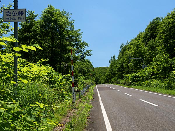 大木に覆われ、昼なお暗い丘陵地帯にあり、そこを通る人が念仏を唱えて歩くと仏様が現れて道案内をしてたという言い伝えから、この名称が付けられたとされています。今では車で簡単に通りすぎてしまいます。道道688線大成地区。