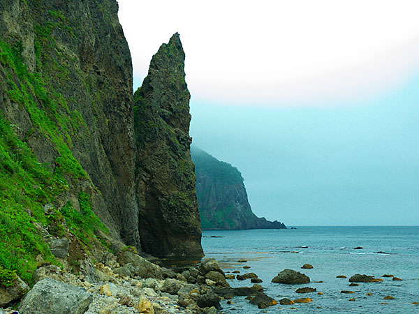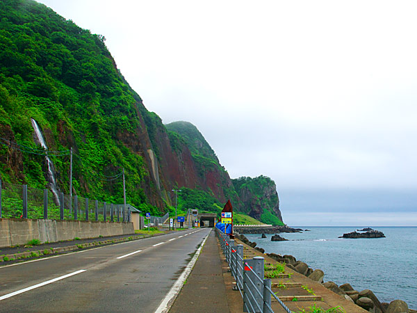 カムイエト岬からマッカ岬にかけては人を寄せ付けない断崖のなかに奥の深い洞窟や天然シャワーを浴びられる滝など知床岬にも引けをとらない秘境。国道が開通して見られなくなってしまった風景だがシーカヤックか観光船等に頼る以外には方法はない。ただその片鱗は別刈港の外防波堤と歩古丹展望パーキングから垣間見る事が出来ます。