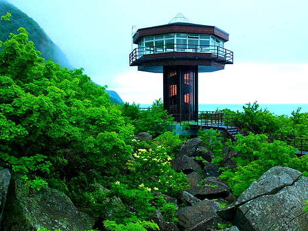 舗装された急坂を上り詰めた所に有る駐車場から階段を少し登ると雄冬の海を一望できる展望台。晴れた日には素晴らしい夕陽を見る事が出来きます。展望台の周囲は天然のロックガーデンとなっているが、お勧めは桜と紅葉のシーズン。遊歩道が有り登り口は岩場を整備した雄冬岬岩石公園、展望台より先の遊歩道は閉鎖。まむしに注意。