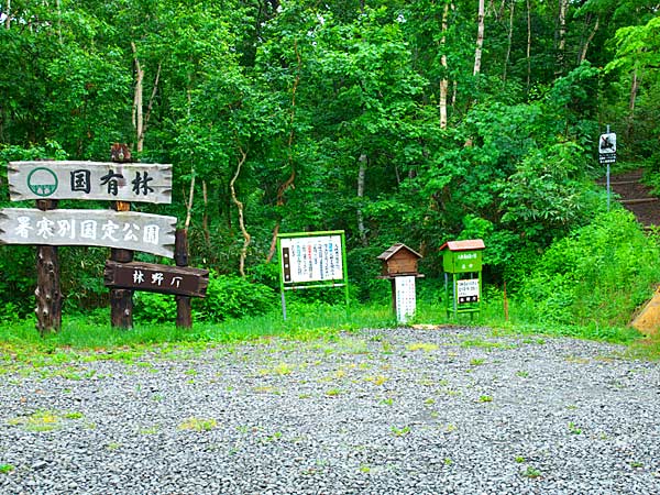 増毛市街から果樹園をぬけて暑寒別川沿いの道をさかのぼること約13㎞の所に暑寒岳の登山口となる暑寒荘があります。暑寒荘の周囲は自然とのふれあいを気軽に楽しむことができる山岳公園になっていて・望岳の森・せせらぎの森・さえずりの森・清流の森・の4つのゾーンに分かれ約2kmの遊歩道がある。遊歩道はチップ材が敷き詰められているので長く歩いても疲れにくいウォーキングコースですが、草刈りなどはされていない事もある。山小屋周辺でのキャンプは可能ですが、完全な野営となる。