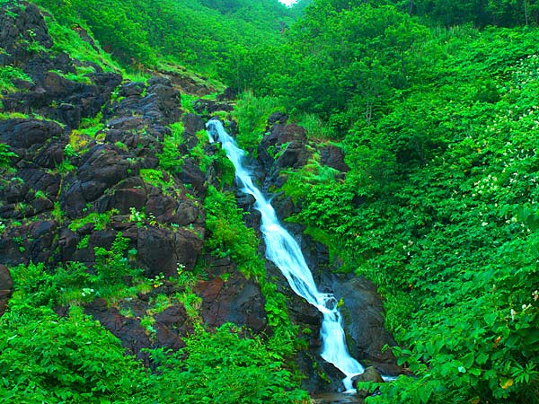暑寒別川水系にも滝は数多く存在するが名前が有るのはこの滝だけのようです。暑寒別川支流ガンケの沢川でアプローチは遡行のみ、往復で四時間はかかるという。沢登りコースでは無いので余り知られていない滝です。