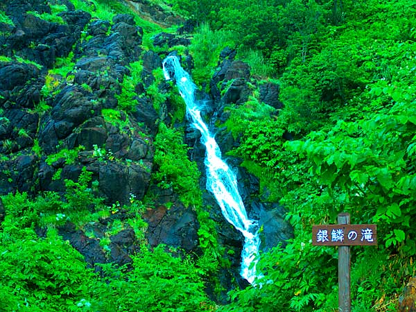 岩肌を滑り落ちるように流れる滝ですが増毛側から行くとトンネルの出口で見えず見逃す。滝は黒岩トンネルの直ぐ横にあり駐車のスペースも有るので滝見には便利だが、出入りには車に注意。名前の由来はこの滝の近くにニシン番屋があった頃、漁を終えた猟師がこの滝で衣服を洗い、ニシンのウロコで銀色に光ったという伝説から。国道が完成する前は滝もまだ大きかったと思うが国道工事で変わってしまった。◇所在地:増毛町岩老 黒岩トンネル横 ◇備考:高さ10m、幅3mくらい ◇駐車場:近くに駐車公園あり
