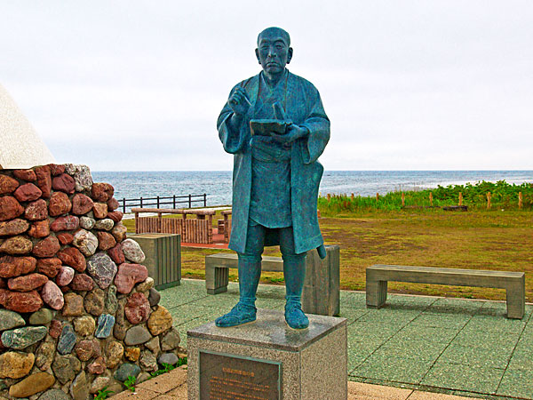 道の駅『おびら鰊番屋』前のトワイライトアーチ右側に、小平町には4度訪れた幕末の探検家で北海道の名付け親、松浦武四郎翁の銅像が設置され、鰊漁場の賑わいを極めた往時の歴史を詩に残す。夕陽をイメージしたモニュメントに、武四郎翁が鬼鹿で詠んだ短歌『名にも似ずすがたやさしき女郎花なまめき立てるおにしかの里』と刻まれている。(西蝦夷日誌)◆小平町鬼鹿広富48 にしん文化歴史公園