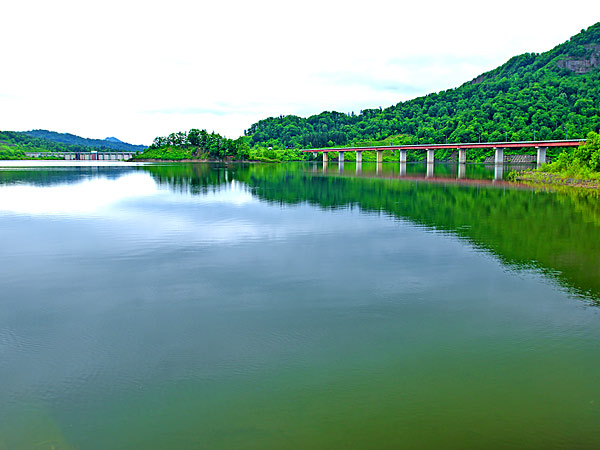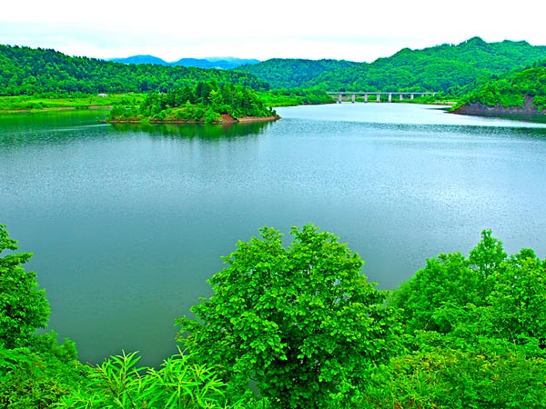おびらしべ湖は小平ダムによってできた人造湖で、この湖に架かる「滝見大橋」は湖上橋としては全道一の長さを誇る。おびらしべ湖から道道742号線のルートと併せて紅葉の名所、ドライブルートとしてもお勧めできます。湖岸の滝見大橋の北側には駐車公園が有りクビナガリュウのモニュメントがあるが余り手入れはされていない。ダムサイト下にはおびらしべ湖ダム公園が有りこちらは綺麗に手入れされ、日本庭園風の池などが有る。その気になればキャンプも可能だが炊事用の施設は有りません。此所にもクビナガリュウのモニュメントがある。