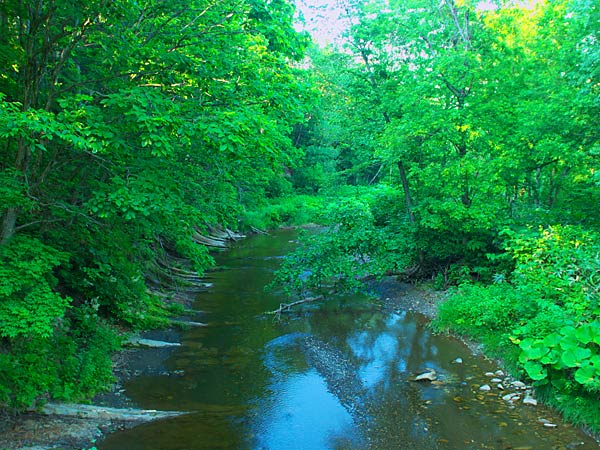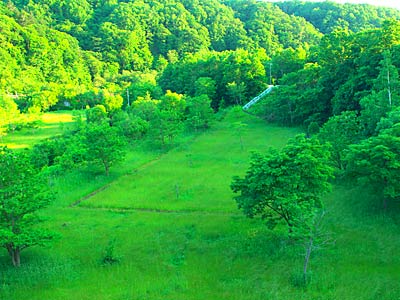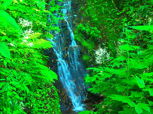 随分と前の事になるが初山別村のHPに冷水の滝が載っていたのを記憶している方もいるだろう。何度か冷水の沢川に釣りに入った事があるが滝には気がつかなかった。滝は初山別川と冷水沢の合流部より上流の本流に注ぐ支流の滝で冷水沢遡行では気付かないのは当然。冷水の滝は初山別千代田線の舗装が切れると道が二つに分かれるが、右折して初山別右股林道に入り橋を渡るとすぐゲートがある。其所に車を止めると滝の音が聞こえるのですぐに滝のある所がわかる。位置的には冷水の沢と初山別沢との分岐点となるが、滝の水は橋の下流で本流に入っている。高さは上部が草の陰になりはっきりしないが見える範囲で10m前後か。