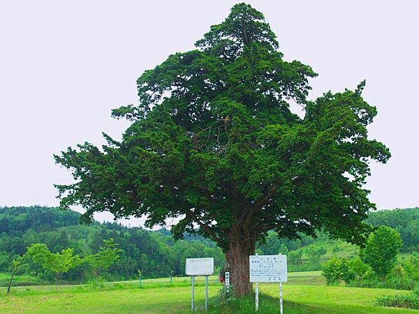 前町字岩見にあるイチイの巨木で推定樹齢は800年、樹高12m、幹直経1m、幹の周囲は3mを超える。イチイとしては若輩者だが千年を超えるイチイが持っている風格を備えている。北海道の記念保護樹に指定されている。幕末の探検家・松浦武四郎が引き返したのもこのへんか?