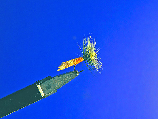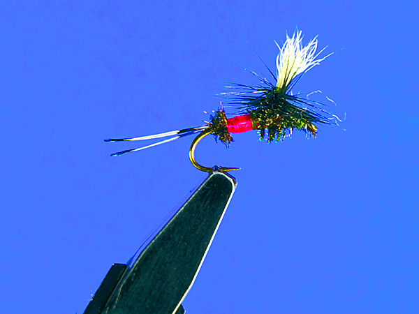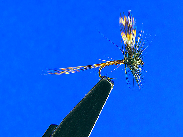 スリムで切れ味の良いフライと云うことで挙げるとクイル・ゴードンとかモスキートというタイプのフライになってしまう。ボディにピーコッククイルやピーコックヒールを巻いてあるためスリムでハックルは少なめ、ヤマメキラーと云った所だが視認性はやや劣る。ウイングの色を明るくすると見やすくはなるが。