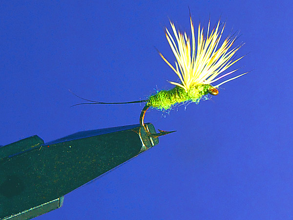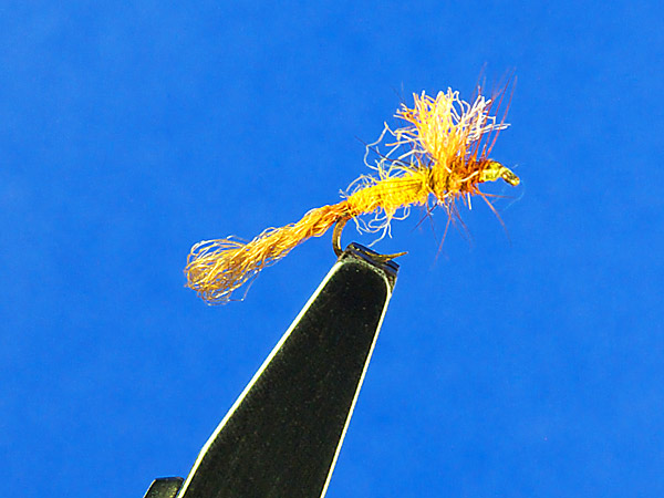 カガンボのイミテーションフライとして考えられた様だが、沈んでもイマージャとしてフライの効果は持続出来るがメイフライのイマージャーとしても使えそう。ラーバフライはカディスラーバと似ているがややスリムな感じとなるが細身で黄色がキーとなる。