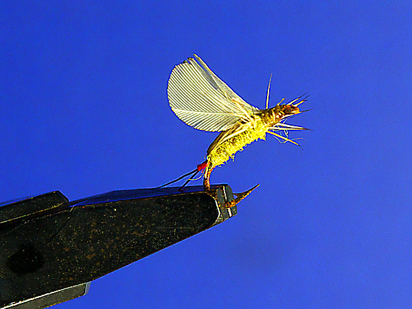 コカゲロウとカガンボのイミテーションフライとして考えられた様だが釣り場での対応力が広いのはコンパラダンと同じだろう。たとえ沈んでもイマージャとしてフライの効果は持続出来る。
