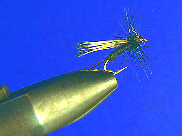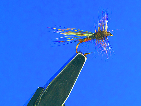 フロントハックルの形でミッジ用にアレンジしたフライ。小さなメイフライからカディス迄をイメージしているが、ややアトラクター的要素もある。視認性はダウンウイングの色等でこまめに調節するしかない。