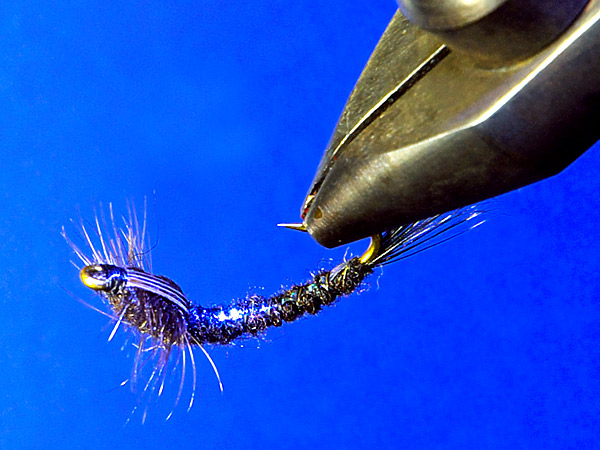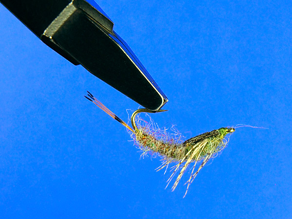 ニンフのシルエットとカディス・ピューパの持つ気泡を持つ事で、スタンダートニンフフライとして知られる。形態ではなく生態のイミテーションと云えば良いのか。色調とフックサイズは普段行く川の水性昆虫に合わせると良い。タイイングは面倒だが難しくは無い。管理人はウエイテットとしたヘアズ・イヤー・ニンフを餌づりの仕掛けで使用した事が有るが普通にイワナが釣れてきた。