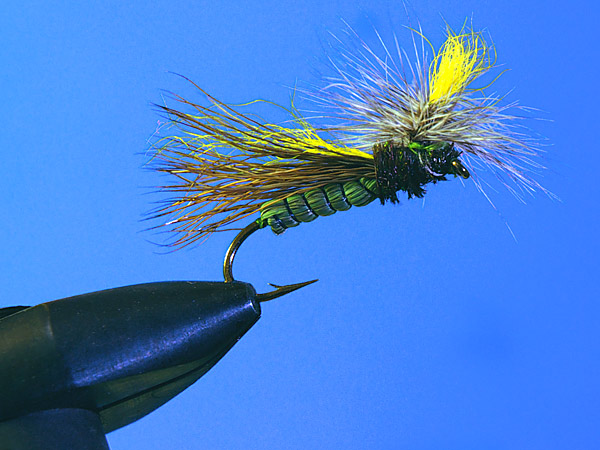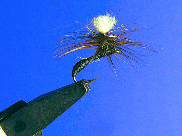 コオロギをイメージしてパラシュートタイプとしたフライで、見やすさと使いやすさが比較的良い。場所とシーズンさえ間違えなければ釣れるフライですが、使いどころとシーズンの選択が難しい。管理人はこのフライで大釣りをしたという記憶がないが、そこそこに釣れる。
