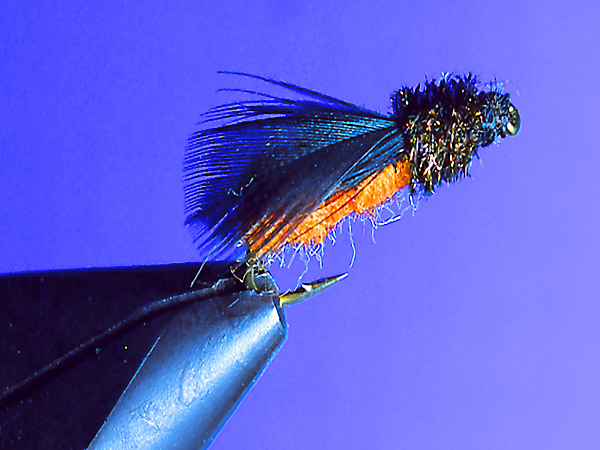 ハチとしてあるが実際にはこんなハチはいないのでテレストリアルとしてはアトラクター的要素が強いのだがルアーでもフライでもなぜか赤は魚の興味を引くことは確か。パイロットフライとしての価値は高そうな実践的フライ。