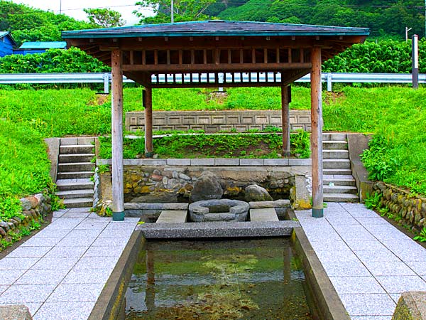 かつて道路もなく秘境といわれた雄冬岬の海岸近くに湧き出る清水。暑寒別山の雪解け水がこの地に湧き出るもので、かつて蝦夷地を探検した近藤重蔵が絶賛した水。雄冬地区市街地の端付近の海側に『雄冬冷清水』の看板があり東屋が側にあるので簡単に見つかると思。信じられないような湧水量ですが残念ながら飲用不可。◆増毛郡増毛町雄冬 雄冬海岸