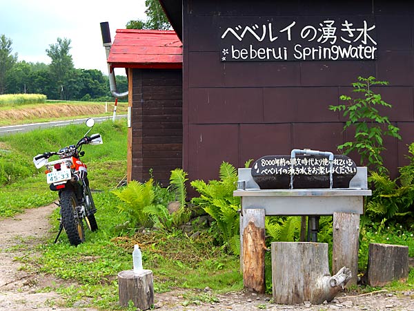 上富良野から麓郷方面に向かうベベルイ零号線の本幸付近に『ベベルイの湧き水』と書かれた建物の横に小さな流し台があり、蛇口から水が流れっぱなしになっています。ミネラル成分は多めな様でコーヒーを淹れるのには向いているようです。建物の裏側の路を行くと横にパイプから流れ出している湧水が有りました。それにしても水脈が変わると同じ地域の湧水でも硬度がまったく違うというのは不思議ですね。
