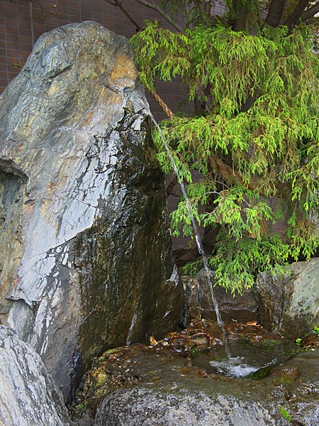 延命長寿の水は道外の方にもよく知られている男山酒造り資料館の前庭にある。前庭は日本庭園となっている隠れた名園です。もともとここは酒造りの蔵元で、大雪伏流水の仕込み水を本蔵の横の岩から流しています。多量の持ち帰りは自粛してください。資料館は市内中心部から約5キロ、3階建ての屋上に大きな看板があります。開館は9~17時、入館無料です。売店あり蔵元限定のお酒がやはり本命ですね。◆旭川市内永山2条7丁目 国道39号線沿