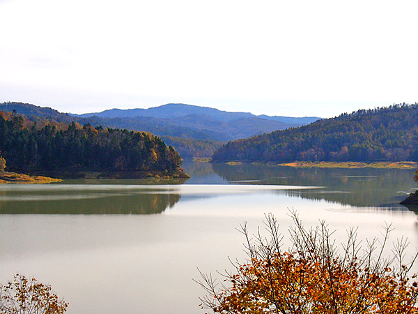 昭和32年に桂沢ダム完成によりできた人造湖で道立自然公園に指定されている桂沢湖は周囲は62kmあり原始林にかこまれ特に春と秋は綺麗です。水量の変化が多いダム湖特有の特徴と地滑りにより濁っている事が多い。ダムの基盤となつているのはやや堅い砂岩を主体とする三笠層でアンモナイトを産出する事で有名。つまりダムの完成により全国でも有名なアンモナイトの産地はその核心部の殆どがダムの底に沈んだ。その前に発見された化石は市立博物館にて展示。