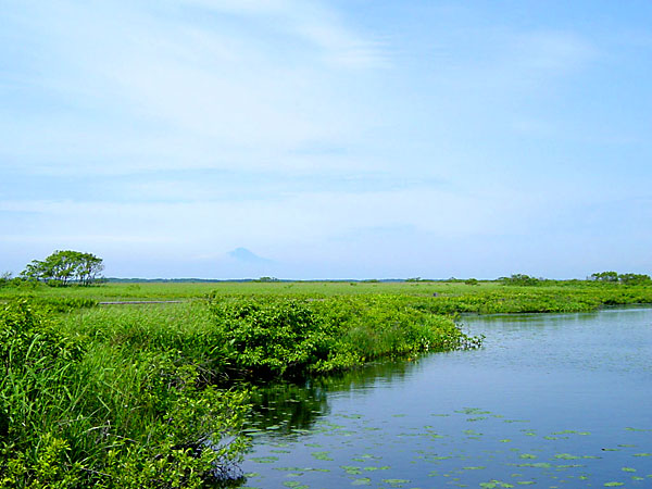 豊富と幌延を結ぶ国道沿いのJR下沼駅近くに名山台駐車場が有る。駐車場は広くて綺麗、まるで道の駅のようだ。駐車場の横が展望台への登山口になっている。といってもすぐに展望台に着くのだが。展望台からのサロベツ原野、パンケ沼、ペンケ沼と名峰利尻富士の眺望は素晴らしいが、緑が濃くなると樹木が視界を遮りよく見えないのが惜しい。
