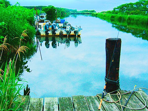 天塩川から取り残され釣り人も殆ど来ない三日月沼で、自然がほとんど手付かずで残っている。鮒の生息には最適の条件を備え貴重なヒブナが生息しています。洪水より入り込んだへら鮒は世代交代を重ねで魚影も濃く型も大型で期待の釣り場といえます。ただ周囲は湿地帯が多く釣りの出来る所は少ないがボートがあれば面白い釣りが出来るかも。雄信内にもヘラブナ釣りでは有望な三日月沼があるがこちらは天塩川を挟んで天塩町になります。
