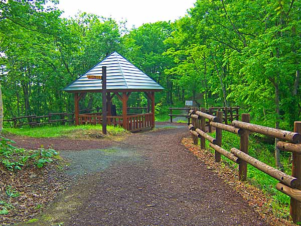 中頓別市街を一望する展望台には、2階建ての休憩舎とベンチなどがあります。中頓別の隠れた花見のポイントでシーズンは地元の花見客が訪れています。それ以外では紅葉のシーズンを除けば静かな展望台です。展望台から続く林道には、途中に『鯉の池』や野鳥の森があります。